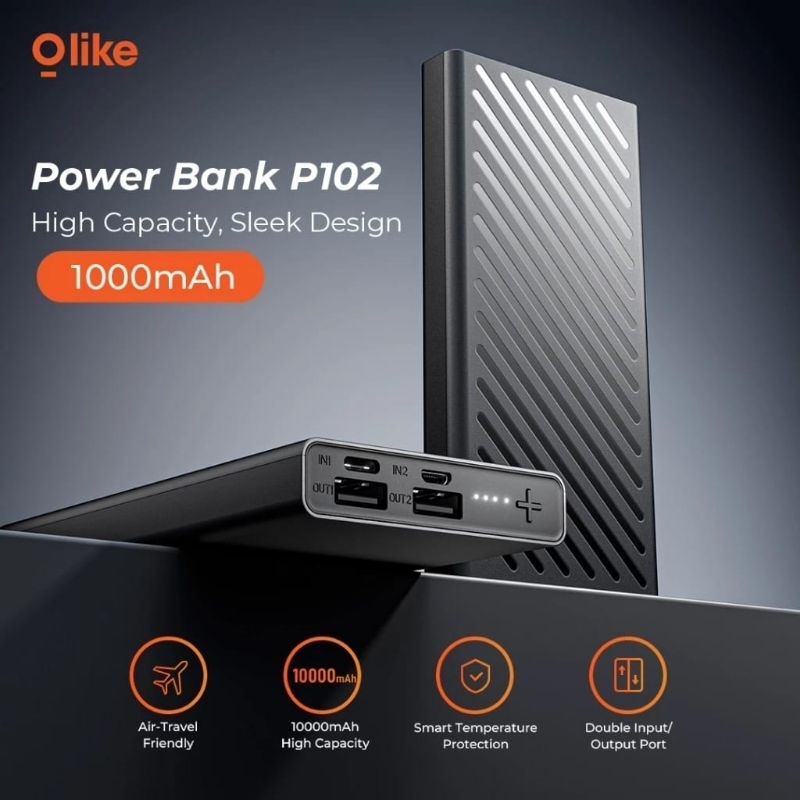 OLIKE P102 Powerbank 10000mAh Dual Input Output Intelligent Chip Protection Power Bank Real Capacity Original