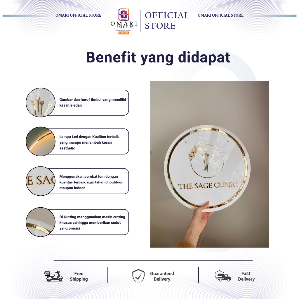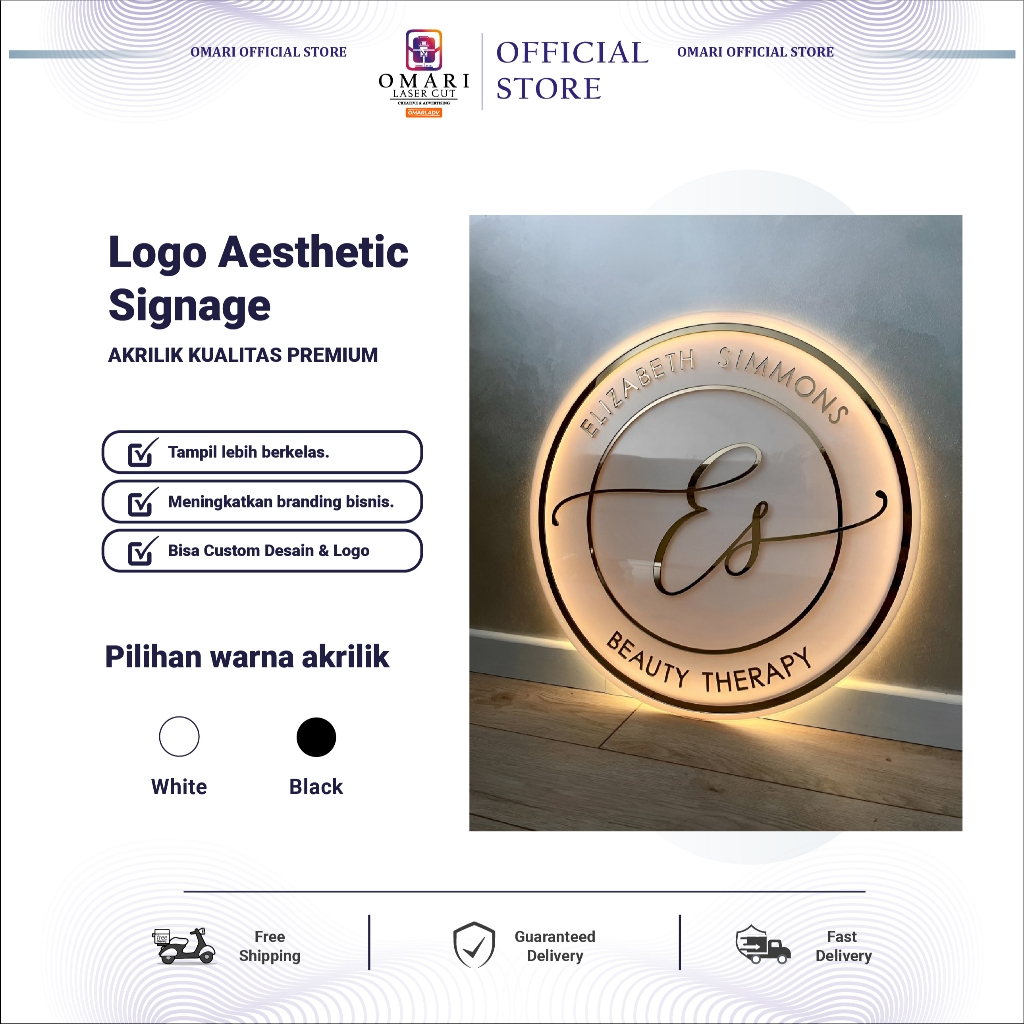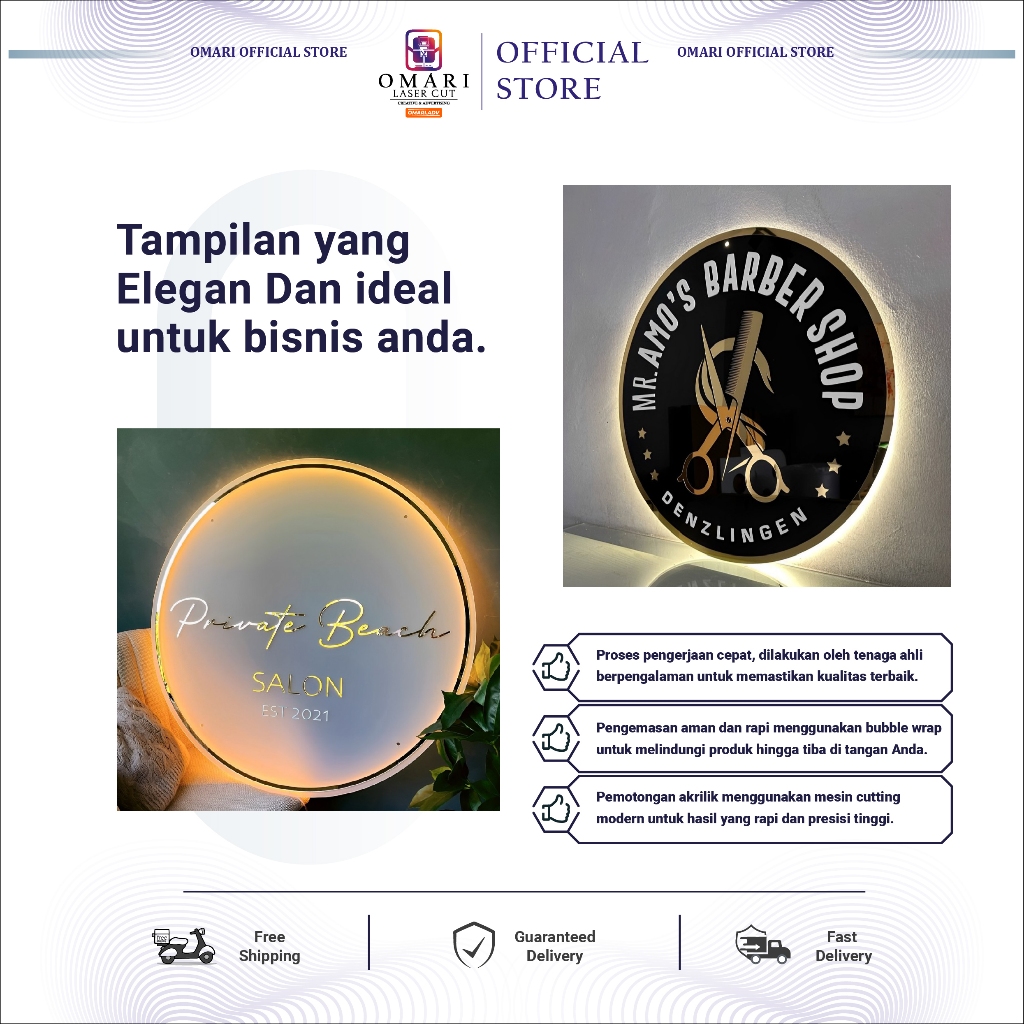 OMARI Logo Papan Akrilik Signage Neon Sign Nyala