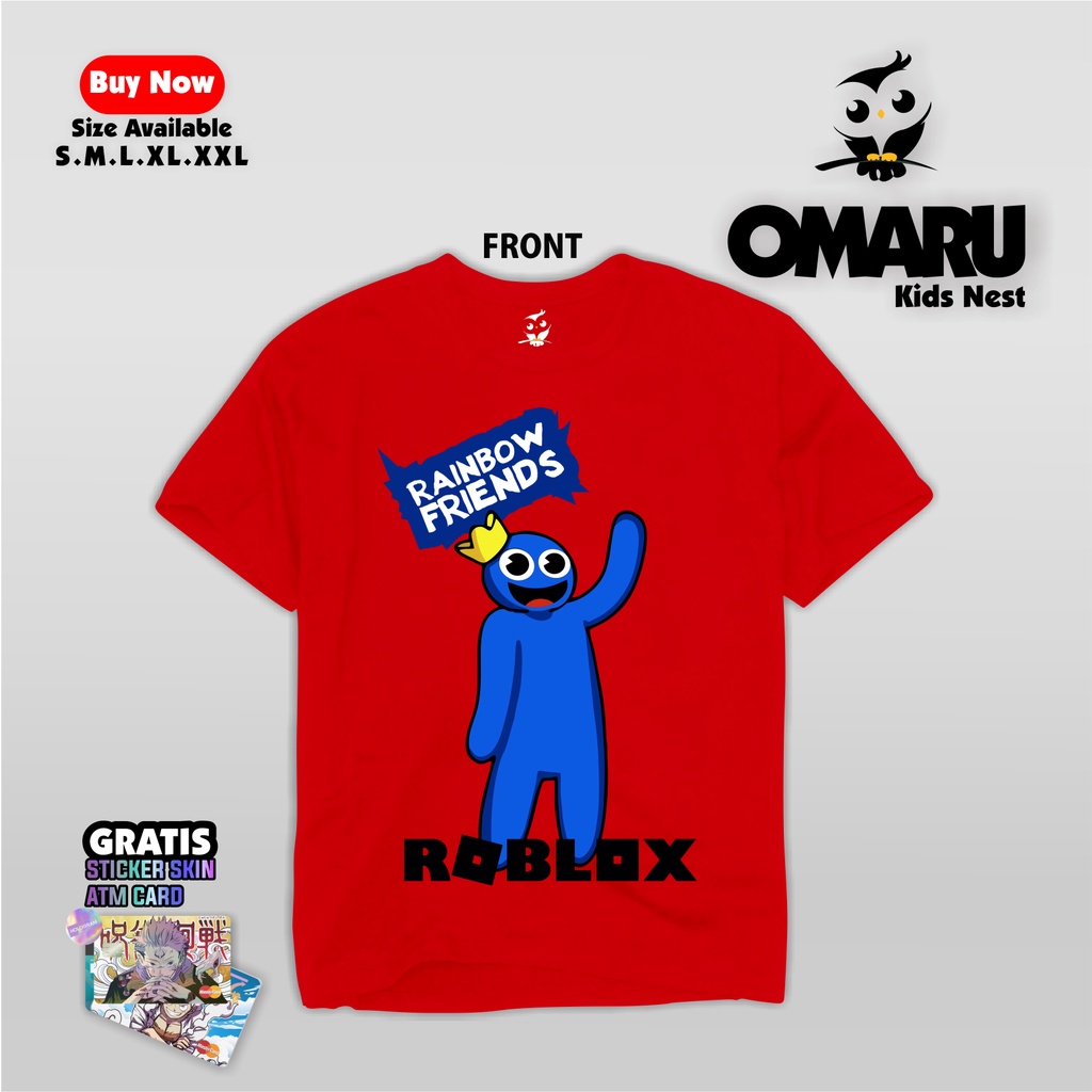 OMARU Baju Kaos Anak 2-8 Thn Unisex Roblox Rainbow Friends Blue Bahan Cotton Combed 30s
