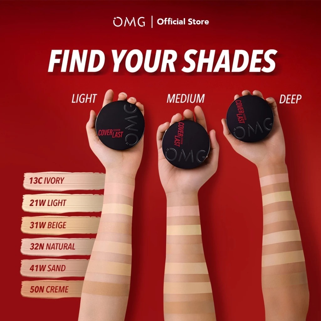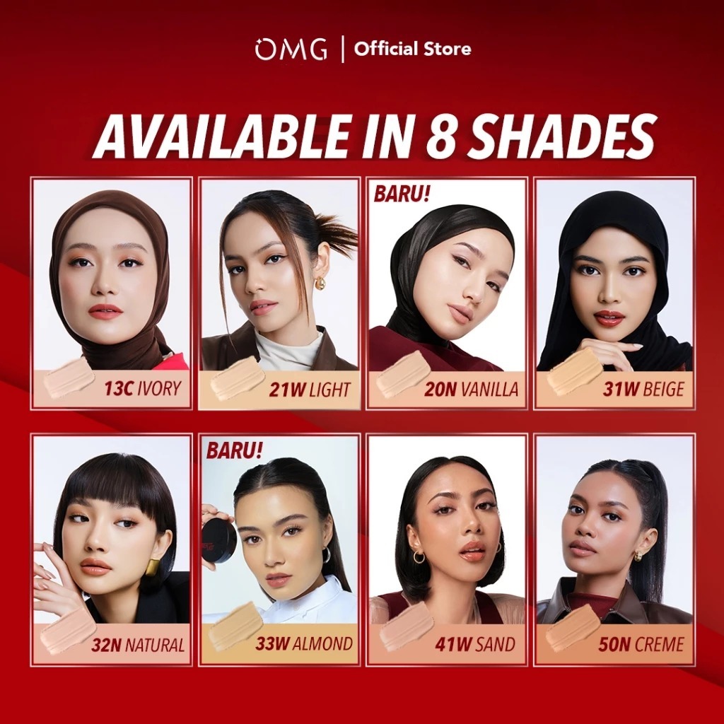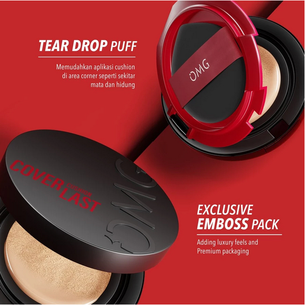 OMG Oh My Glam Coverlast Cushion 15g | Cushion Foundation Concealer Skin Tint Make Up High Coverage Dewy Finish