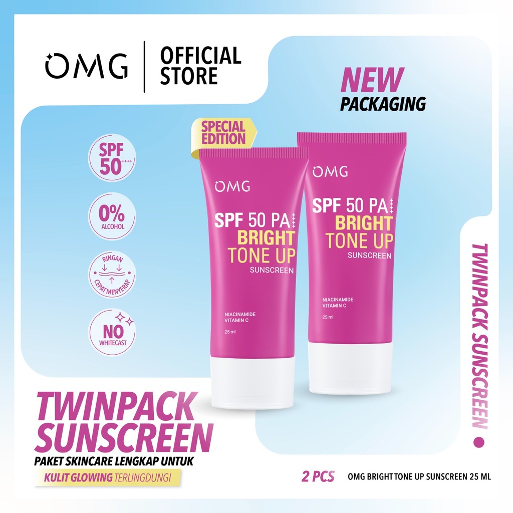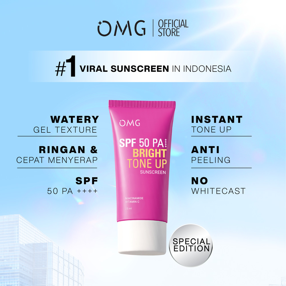OMG Oh My Glow Bright Tone Up UV Barrier Sunscreen SPF 50 PA++ 25 ml - Mencerahkan, Melindungi UV, Ringan & Cepat Meresap