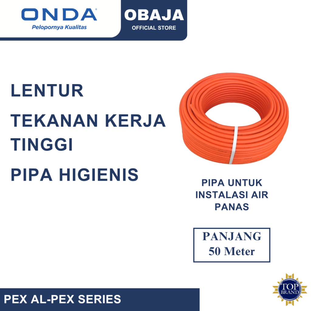 Onda Pipa Air Panas Onda 1/2" 50 Meter / Harga Per Roll / Pex-Al-Pex 1/2" Onda