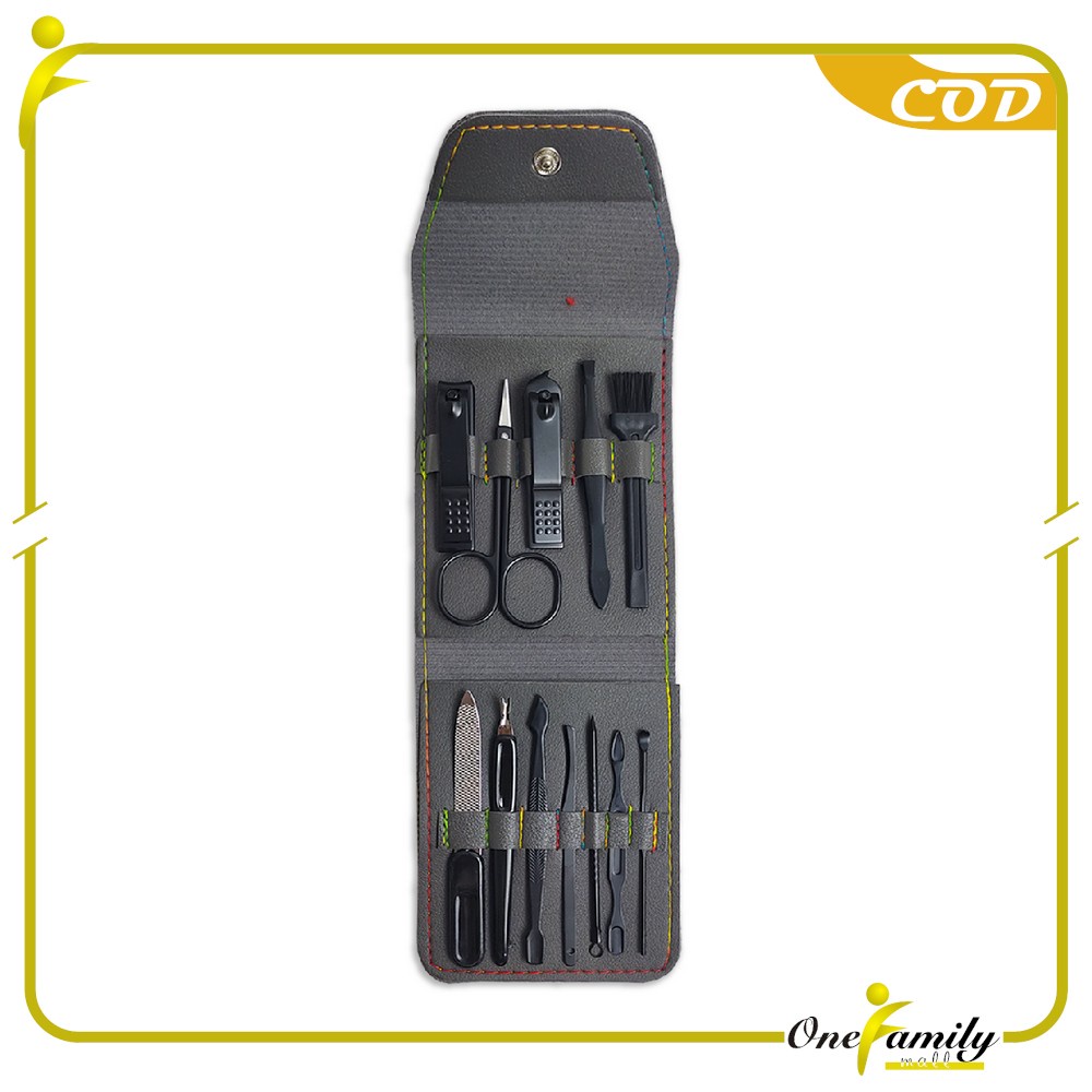 ONE-K111 Alat Menicure Pedicure Set 12 Pcs Free Pouch / Set Gunting Kuku Dan Pinset Perawatan Kuku Bahan Stainless Steel