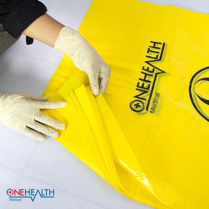 ONEHEALTH Biohazard Infectius Waste Bag 80x100cm / Kantong Plastik Polybag Sampah Medis Bio Hazard Kuningn per pak isi 50pcs