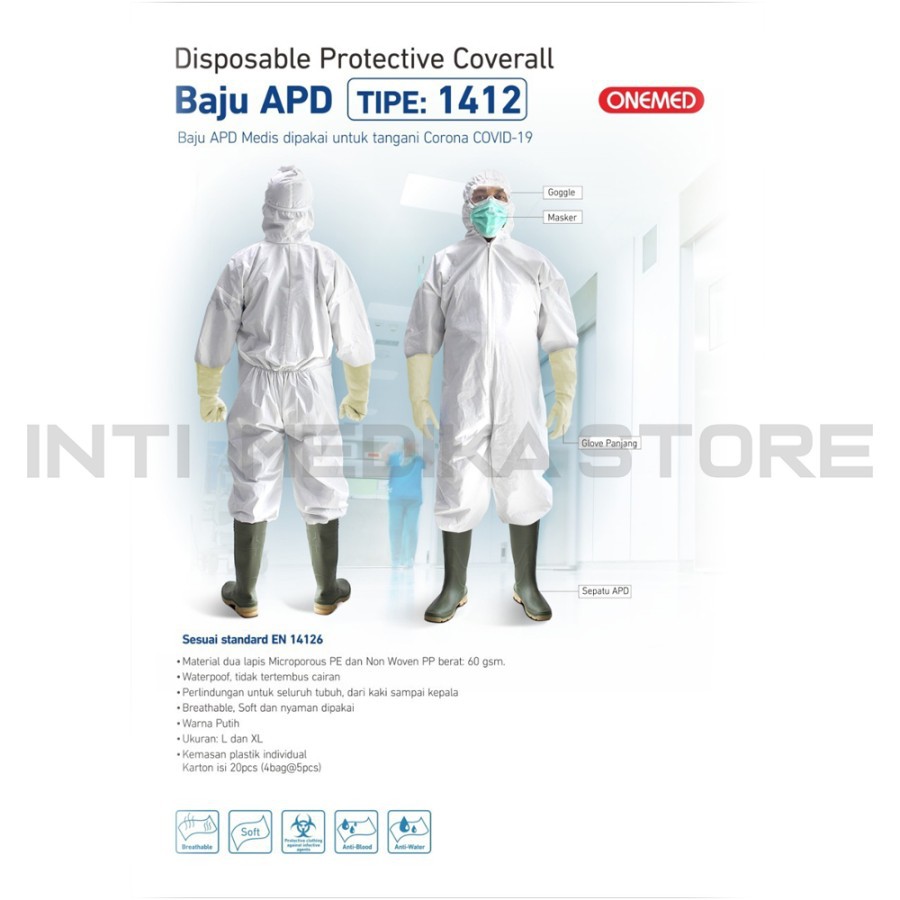 ONEMED - Baju APD Medis Putih 1412 | APD Baju Medis | APD Hazmat