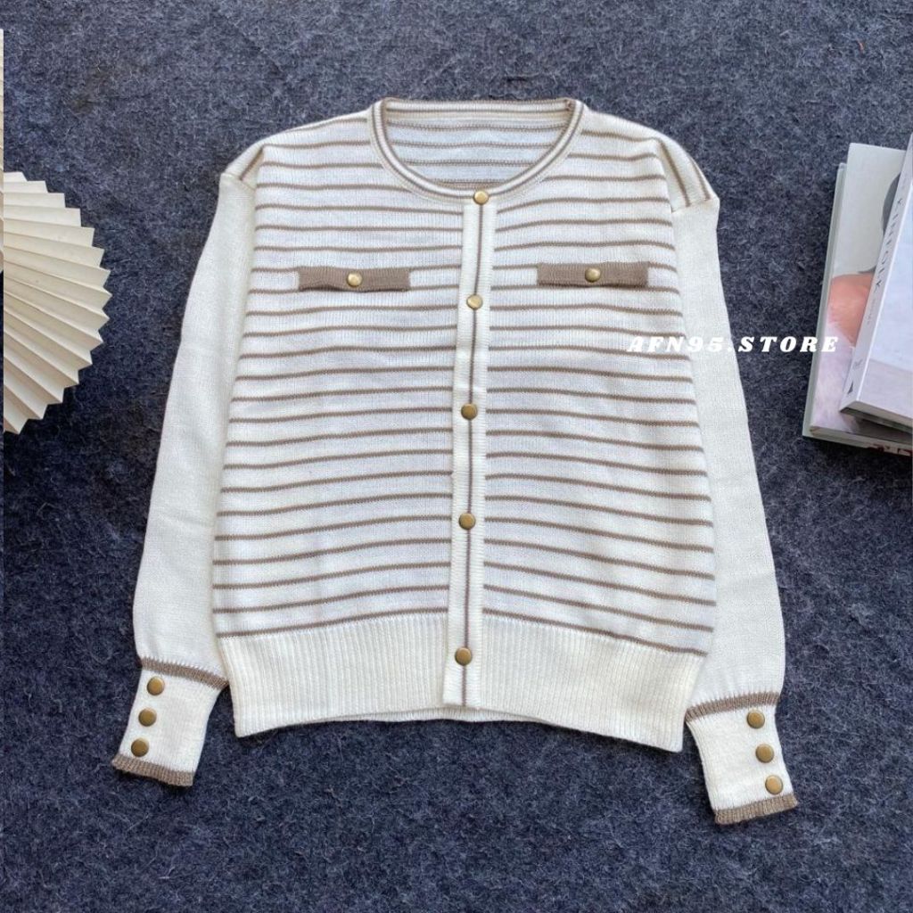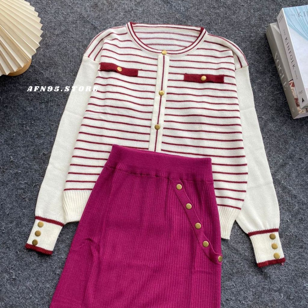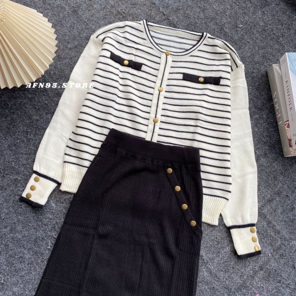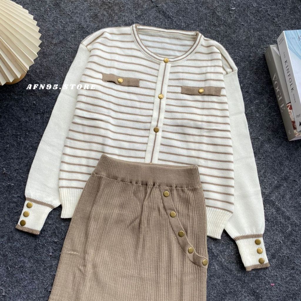 ONESET SARWENDAH CARDIGAN STRIPE KOREAN SETELAN ROK PREMIUM