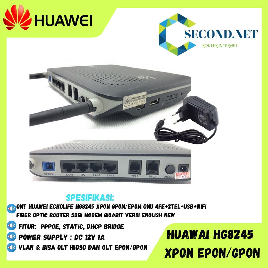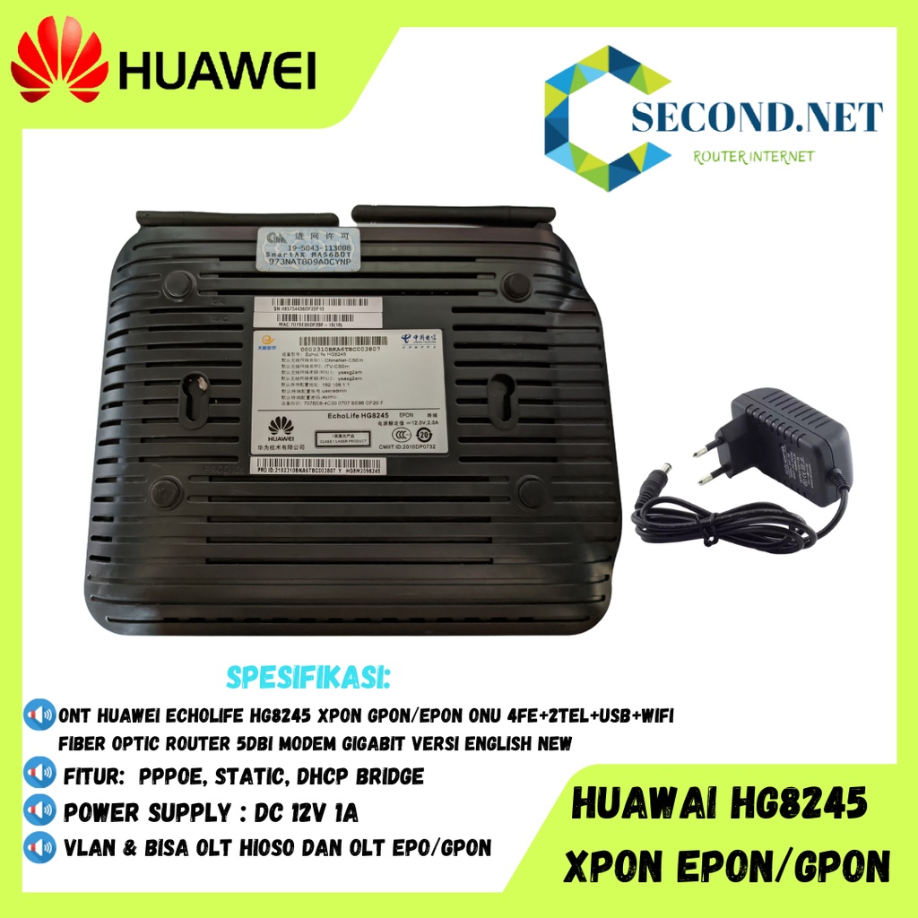 ONT HUAWEI ECHOLIFE HG8245 EPON ONU 4FE+2TEL+USB+WIFI FIBER OPTIC ROUTER 5DBI MODEM GIGABIT VERSI ENGLISH NEW
