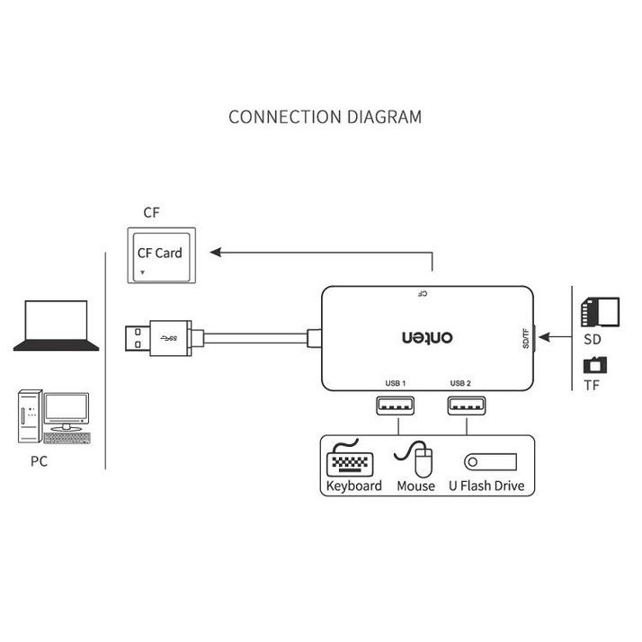 ONTEN OTN-8107 - USB Multifunctional Docking Port and Card Reader - USB HUB Port with Card Reader