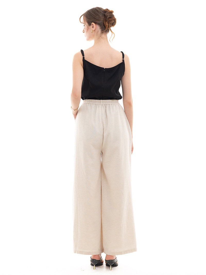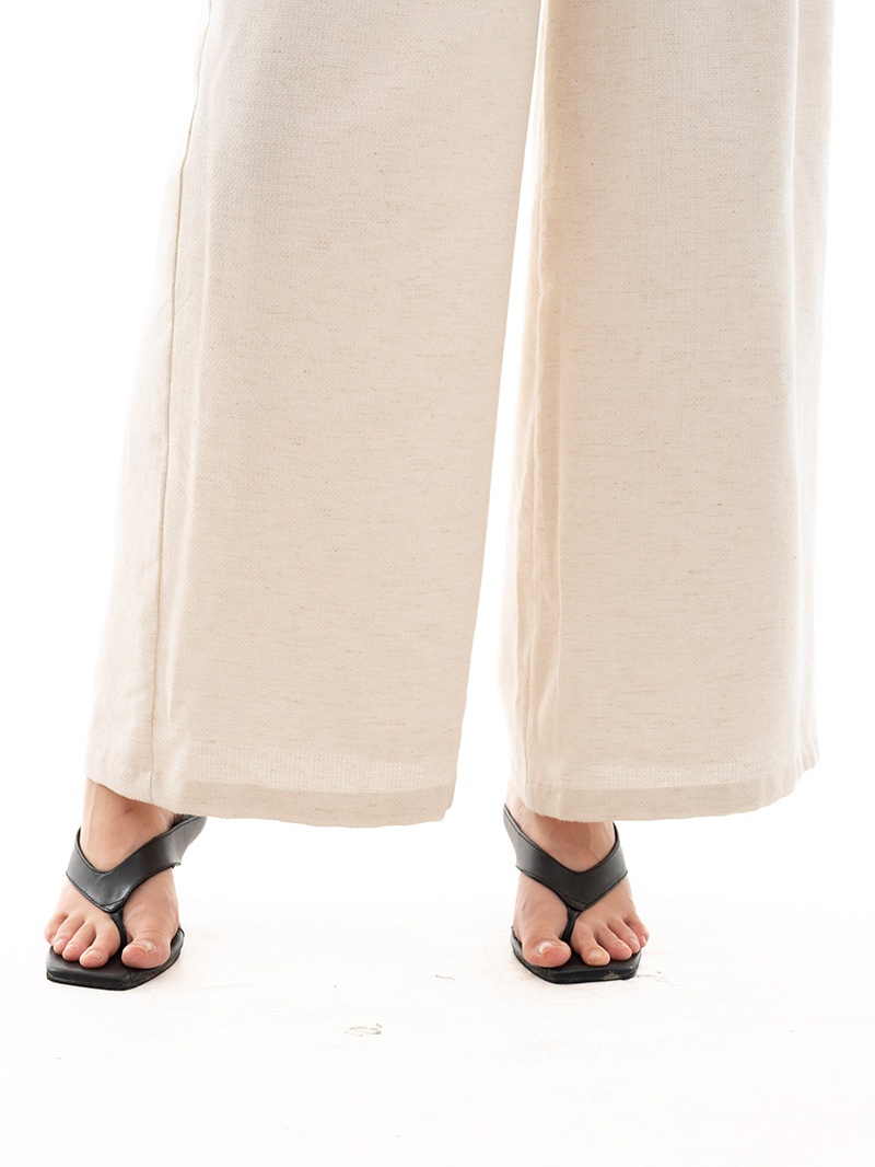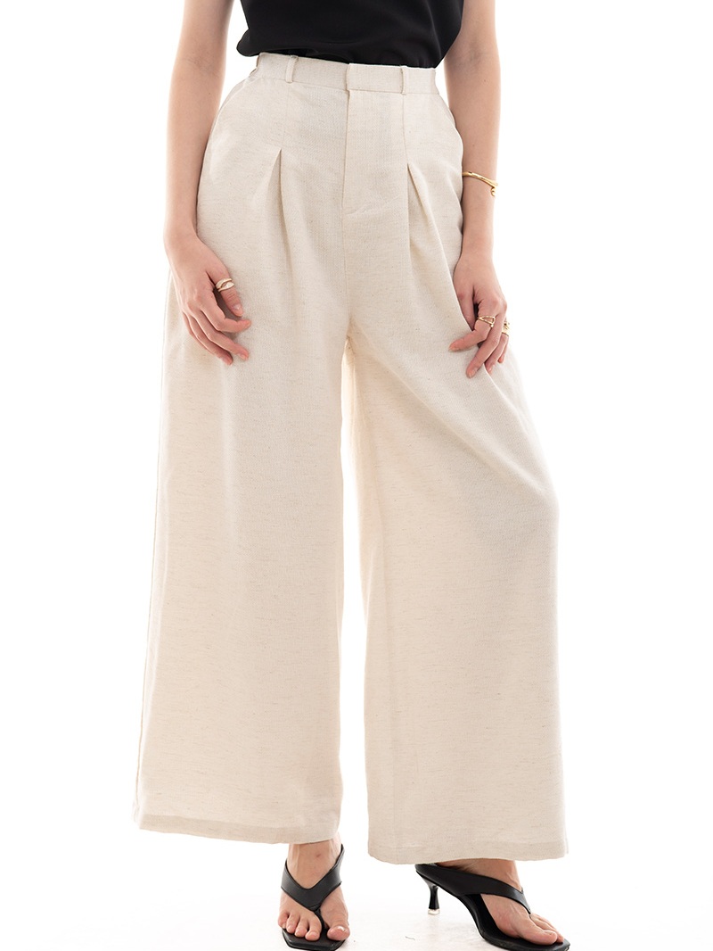 ONYCHA - Natural Pleated Wide Leg Pants In Broken White