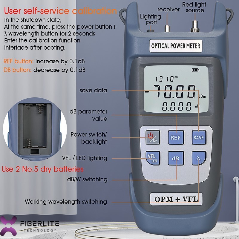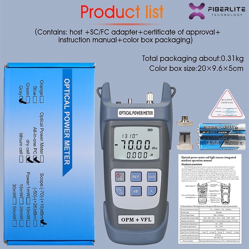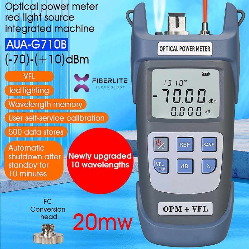 OPM + VFL 10mW 20mW 30mW 50mW Optical Power Meter Visual Fault Locator AUA-G710B COMPTYCO