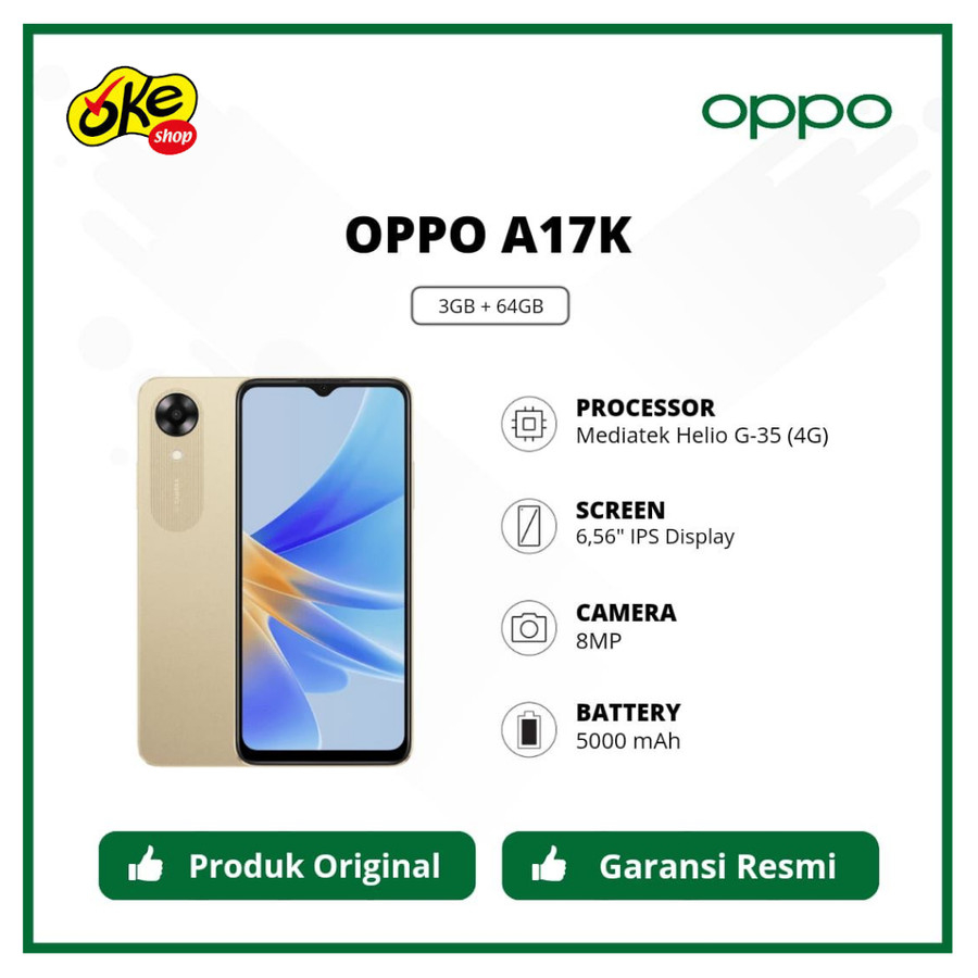 OPPO A17K Smartphone (3/64GB) - Garansi Resmi Oppo