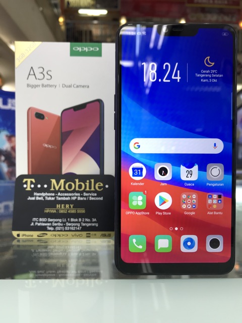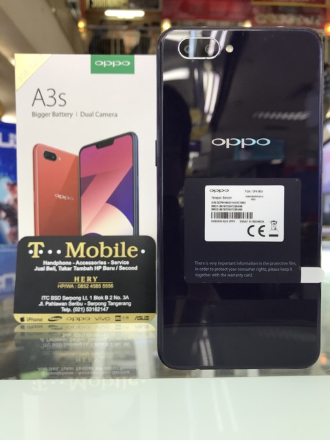 OPPO A3S CPH1803 RAM 3GB 32GB ROM UNGU, SECOND FULLSET ORIGINAL, NON MINUS, GARANSI RESMI OPPO