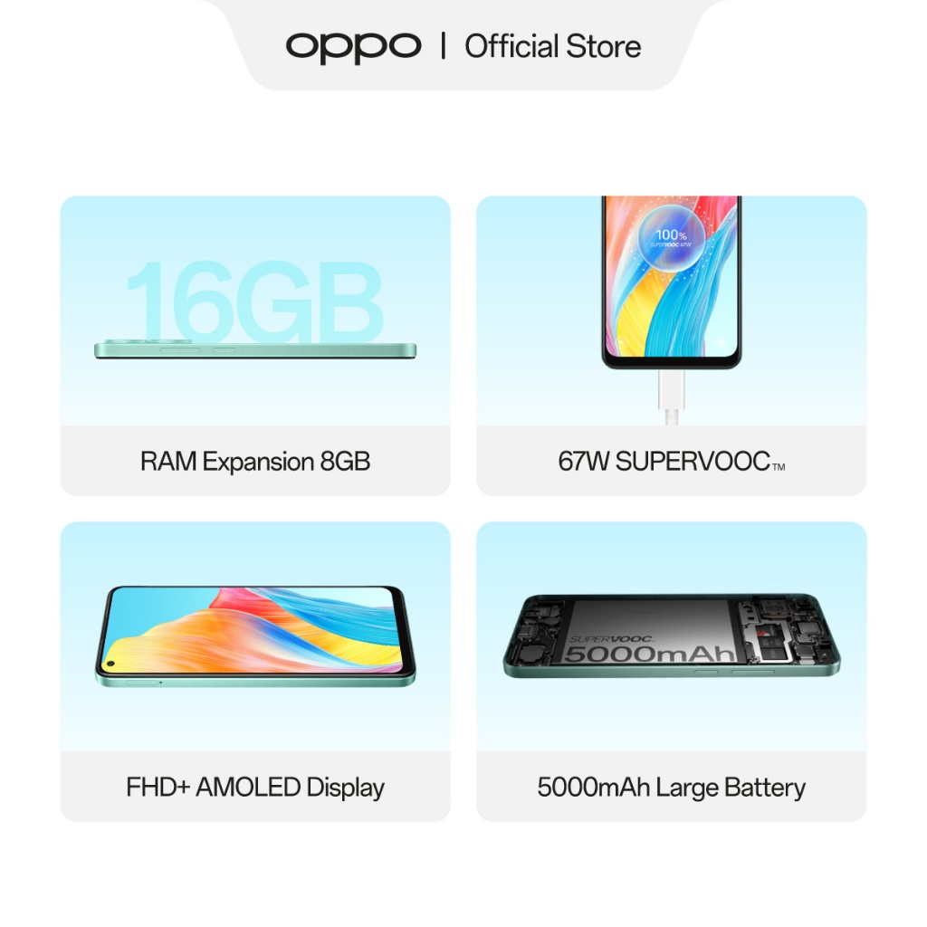 OPPO A78 4G 8GB(+8GB)/256GB (67W SUPERVOOC, AMOLED FHD+, DUAL STEREO SPEAKERS)