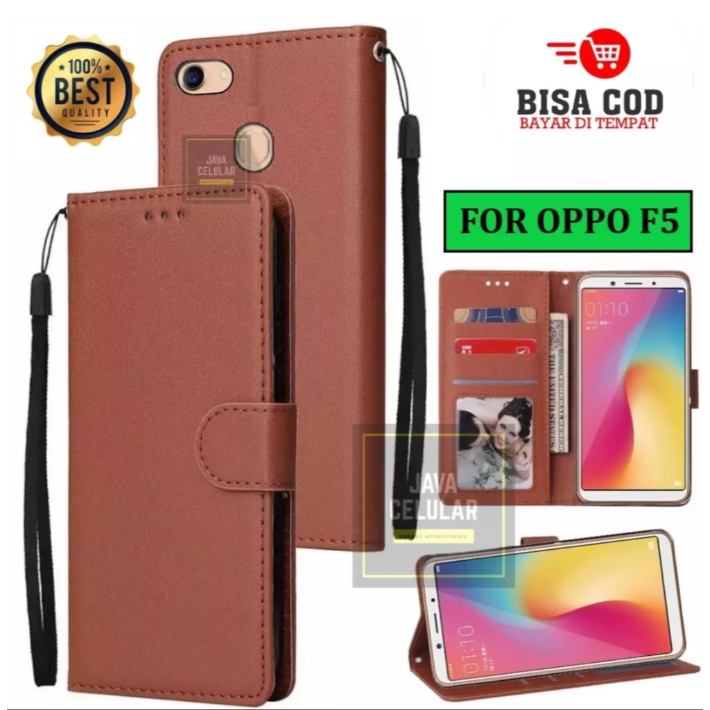 OPPO F5 Leather Flip - Wallet Case Kulit - Casing Dompet Case Wallet Leather Flip Case OPPO F5 casing hp leather dompet kulit Flip Cover Wallet