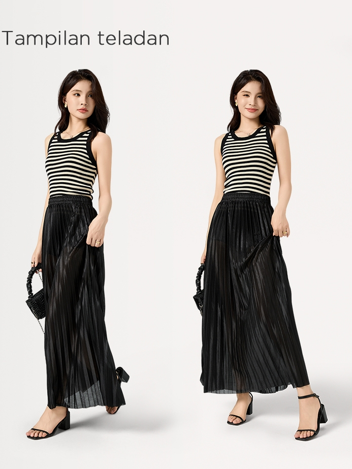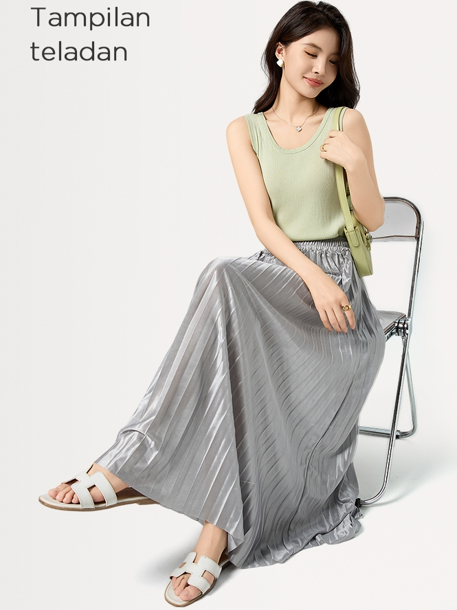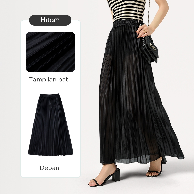 ORANGE Rok panjang lipit pinggang tinggi wanita Rok