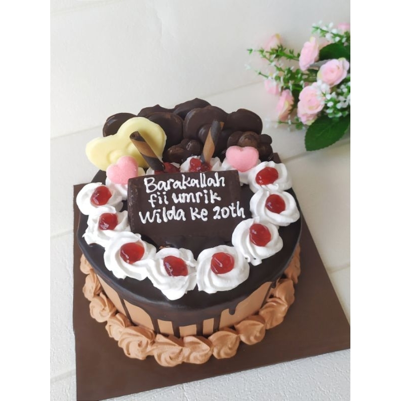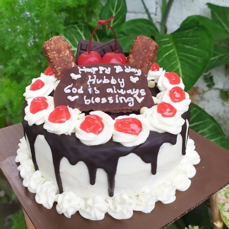 ORDER H-2 KUE TART BLACK FOREST KUE ULANG TAHUN ANNIVERSARY GRADUATION CAKE TART MEIZA CAKE