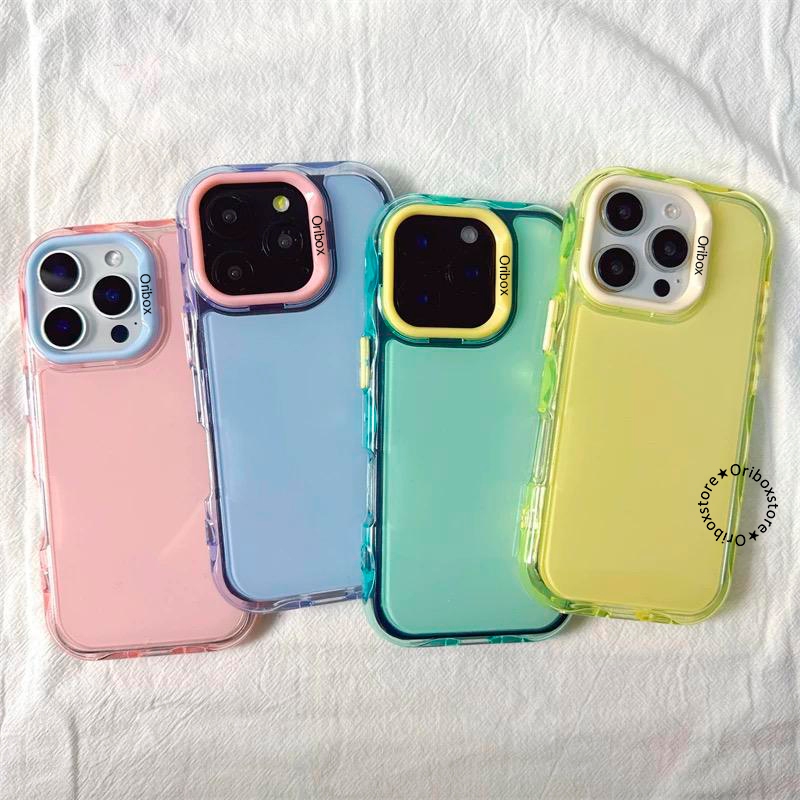 ORIBOX - 2 In 1 Colors Macaron Case Iphone - Softcase/ Case Hp Compatible For Iphone 11 12 13 14 15 16 17 17AIR Pro Plus Promax Pastel Case Full Cover Casing Pelindung Handphone RCI596