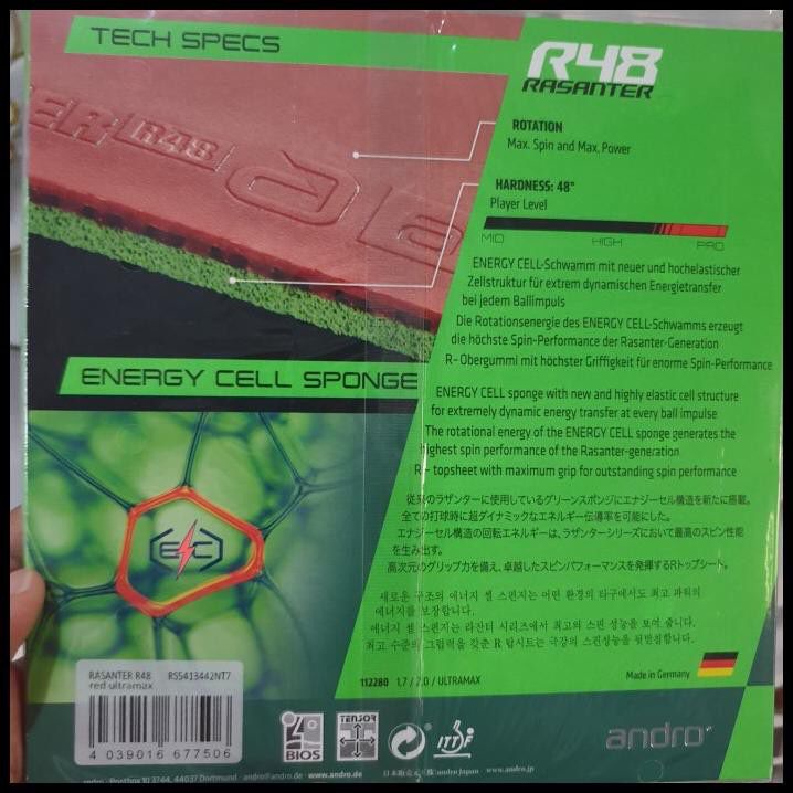 ORIGINAL ANDRO RASANTER R48 Karet Rubber Bat Bet Ping Pong Tenis Meja BARU Dan SEGEL