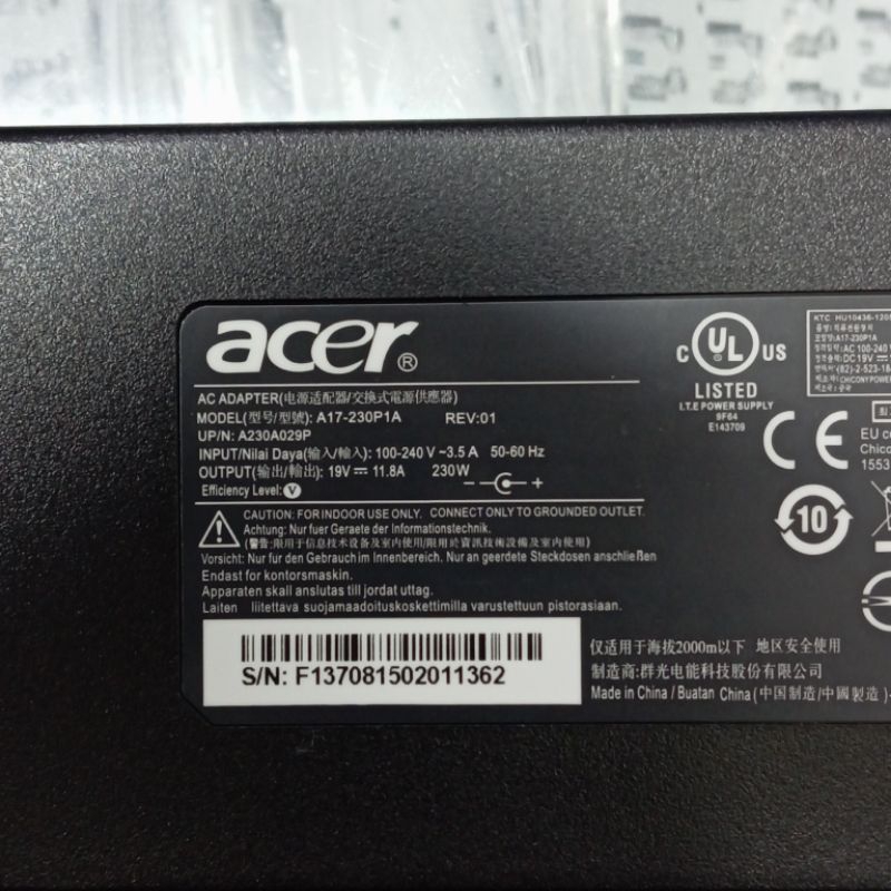 ORIGINAL Adaptor/Charger Acer Predator Helios Neo 16 PHN16-71 19.5V 11.8A 230W