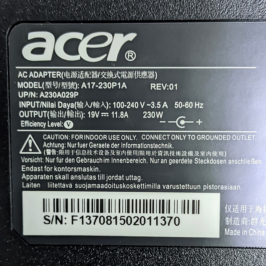ORIGINAL Adaptor/Charger Acer Predator Helios Neo 16 PHN16-71 19.5V 11.8A 230W