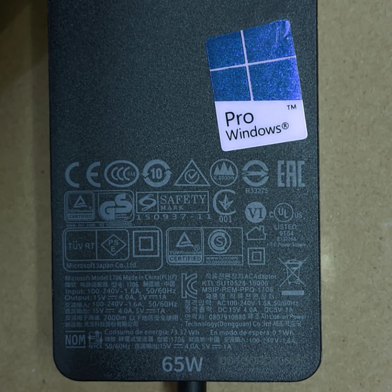 ORIGINAL Adaptor/Charger Microsoft Surface Go Book Pro 3 Pro 4 Pro 5 Pro 6 Pro 7 Pro X Tablet Model 1705 1706 1866 1867 1796 1800 15V 4A 65W