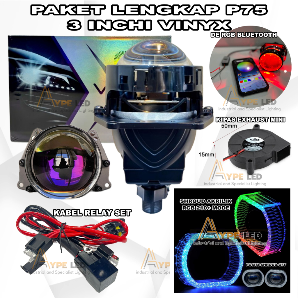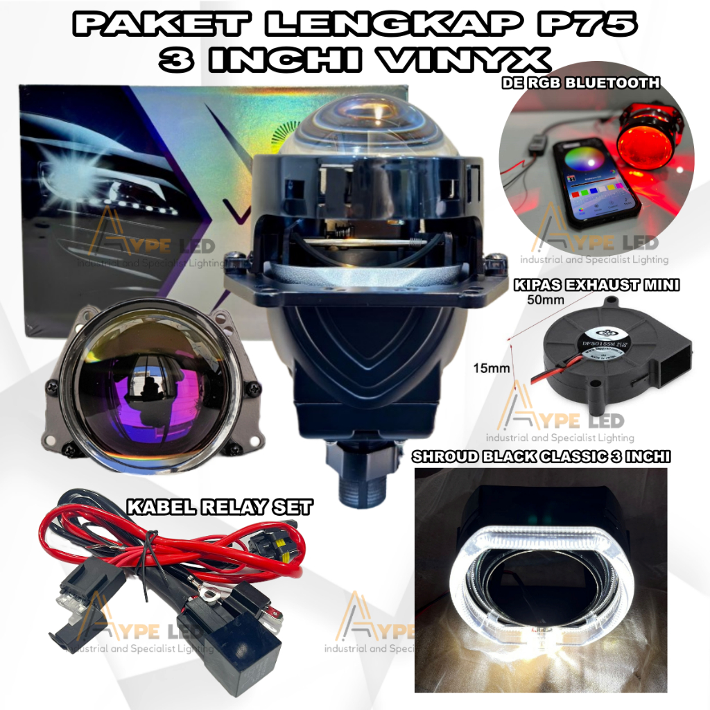 ORIGINAL BILED PROJECTOR VINYX P75 3 INCHI BLACK HOUSING PURPLE LENS 60W/70W BILED PROJIE MOTOR MOBIL 3 INCH
