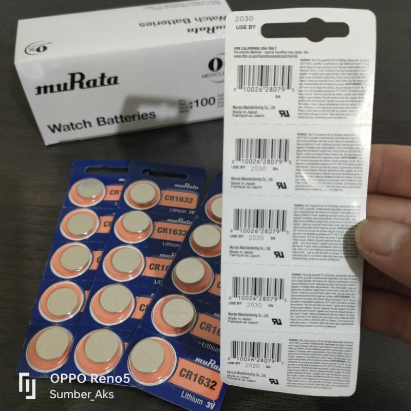 ORIGINAL Baterai muRata CR1632 CR 1632 Lithium 3V Made in Japan Batre Batrai Battery muRata