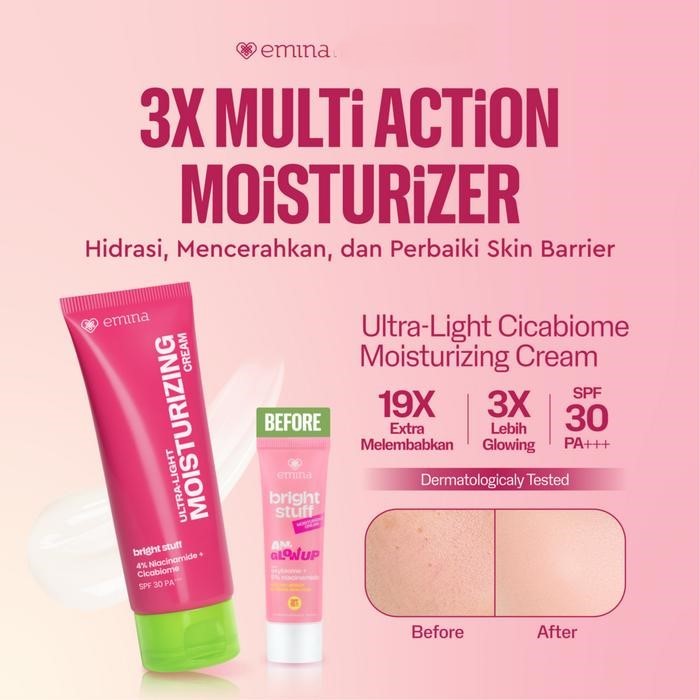 AS Emina Bright Stuff Cream Ultra-Light Moisturizing Cream 20 ml - Pelembab Wajah