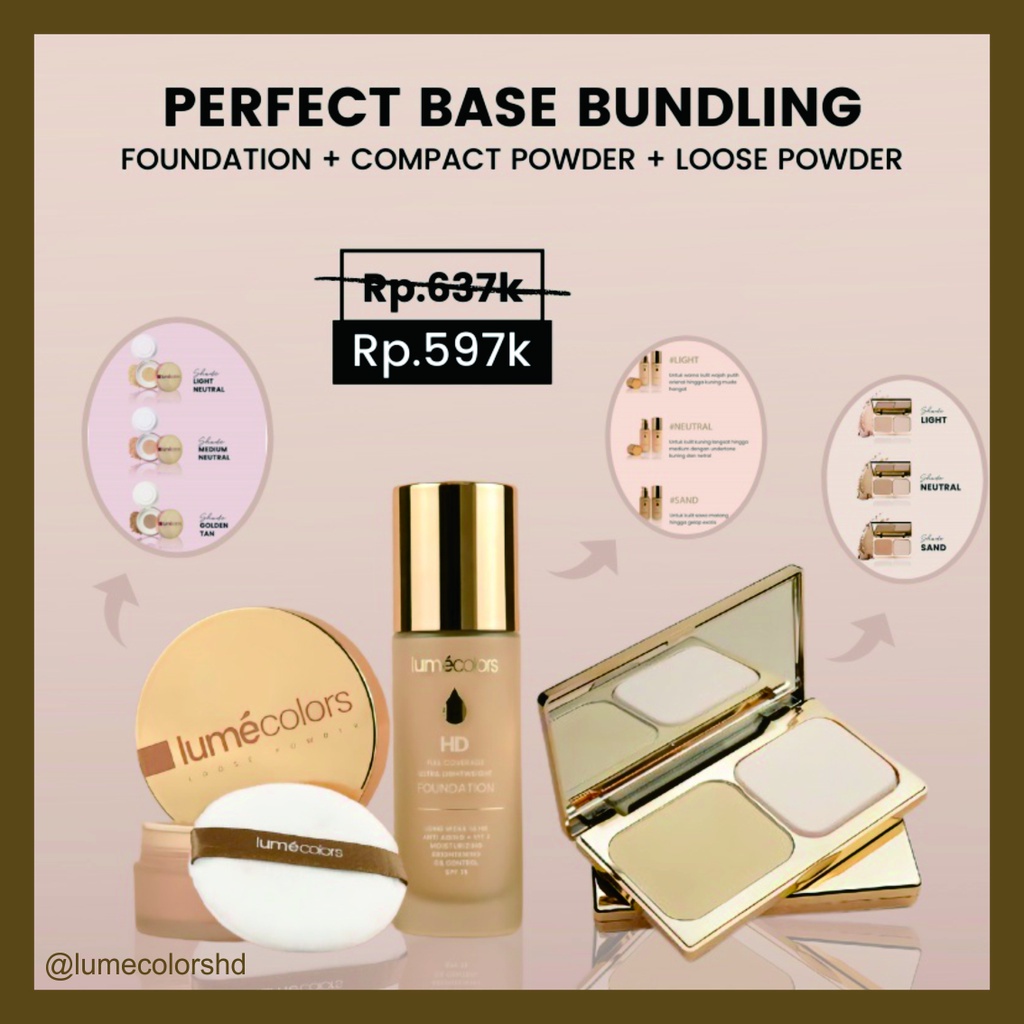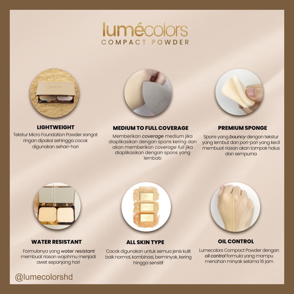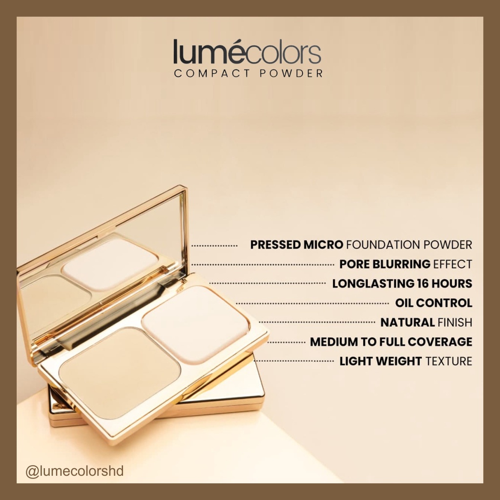 ORIGINAL Lumecolors COMPACT POWDER (CP) Bedak Padat Full Coverage 3 in 1 Powder, Concealer, Foundation Flawless Tahan Lama