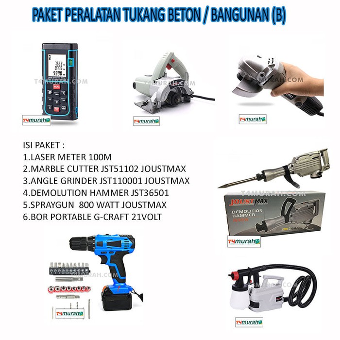 ORIGINAL - Paket Peralatan Tukang Bangunan / Properti super lengkap Murah B
