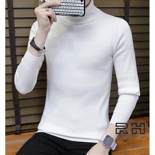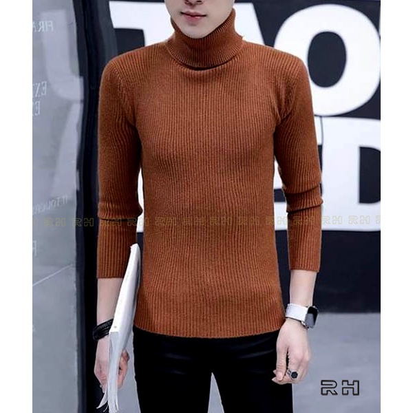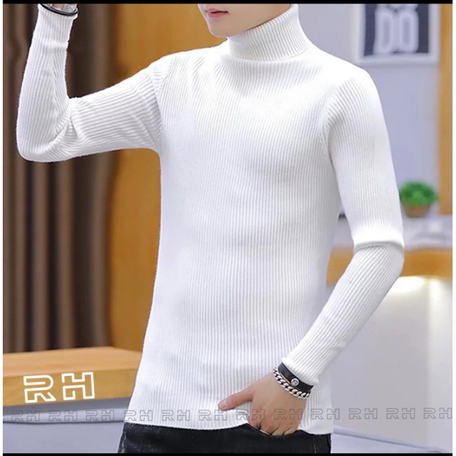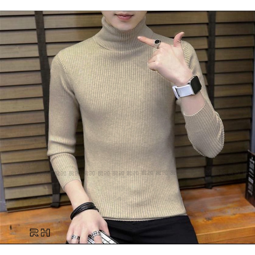 SWEATER RAJUT PRIA TEBAL TANGAN PANJANG TURTLENECK SALUR KERAH TINGGI SWITER KERAH LIPAT RH