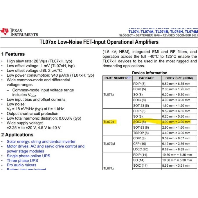 ORIGINAL TL072CDR Low-Noise TL072 JFET-Input Op-Amp Texas Instrument lisuin90 dijamin