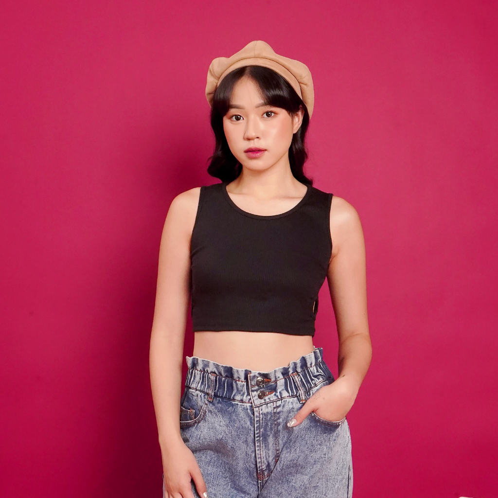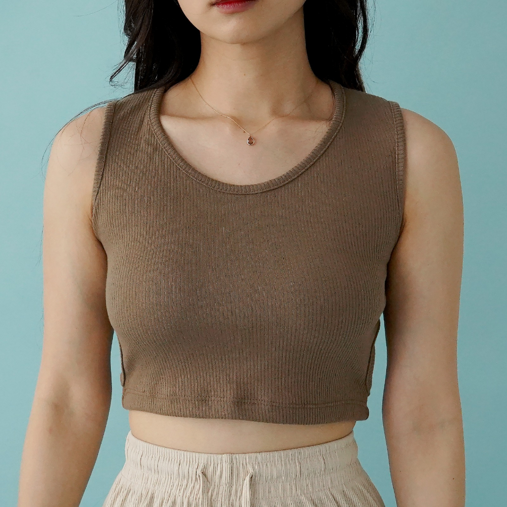 OROY Tanktop O-Waist Korean Style Tank Top Basic Polos Wanita Knit Rib OR1590