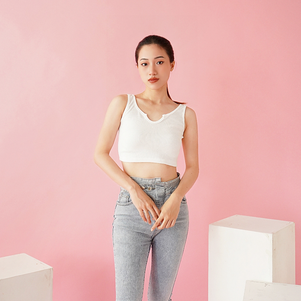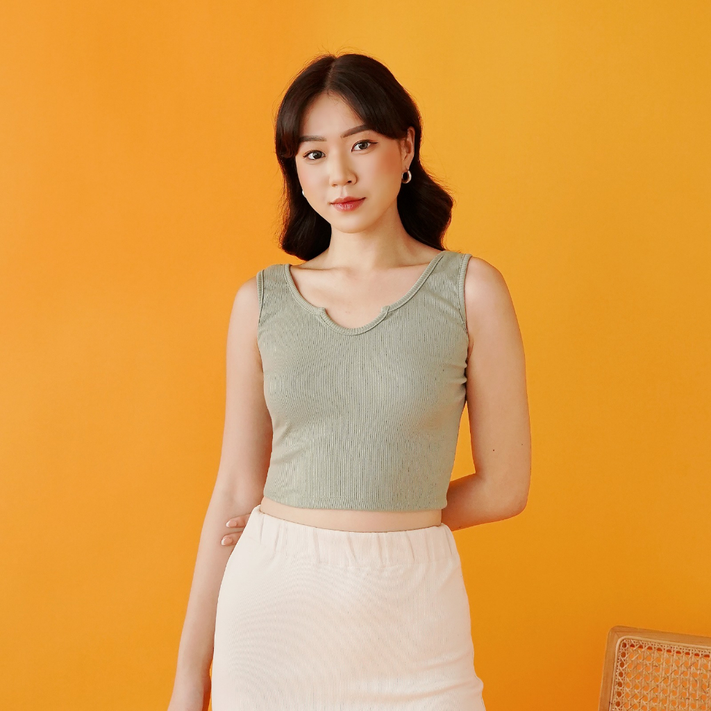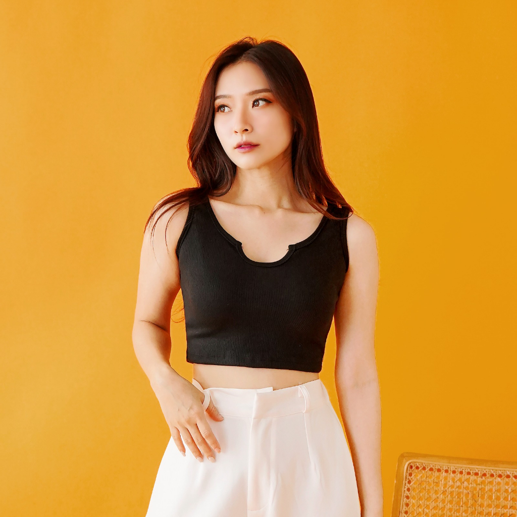 OROY Tanktop U-Neck Korean Tank Top Crop Wanita Polos Santai OR1290
