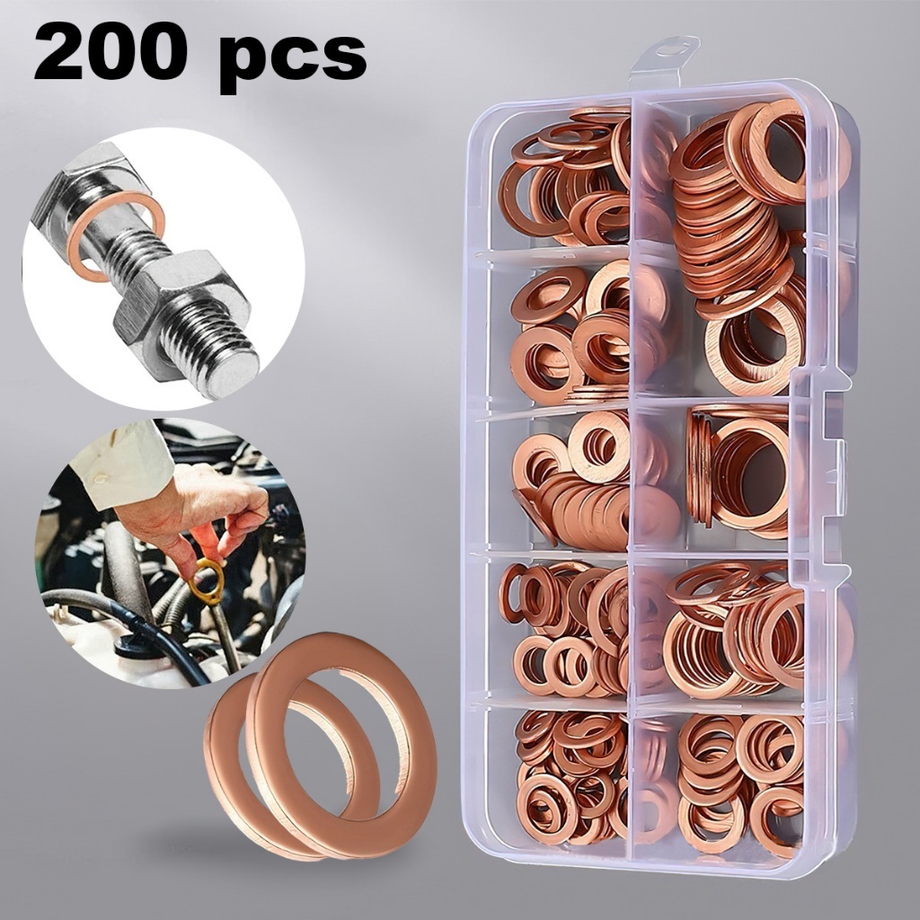 ORing Ring Copper Flat Plat Plate Seal Sel Gasket Nut Baut Tembaga Kuningan 200 pcs Solid 1 Set Assortment Kit Set M5 M6 M8 M10 M12 M14