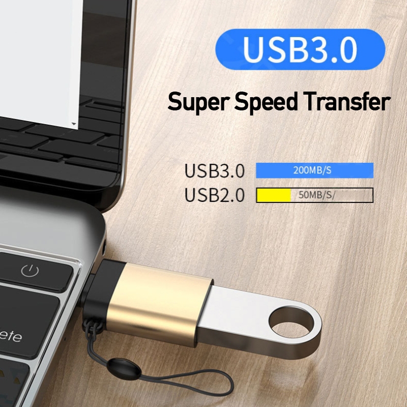 OTG Converter Type C to USB3.0 Konektor Adaptor usb Ke tipe-c Adapter USB OTG Male to Type-C Female Adapter Interface Converter Aluminum Alloy Converter high speed Fast Transfer Converter Mini Portabel with hanging hole