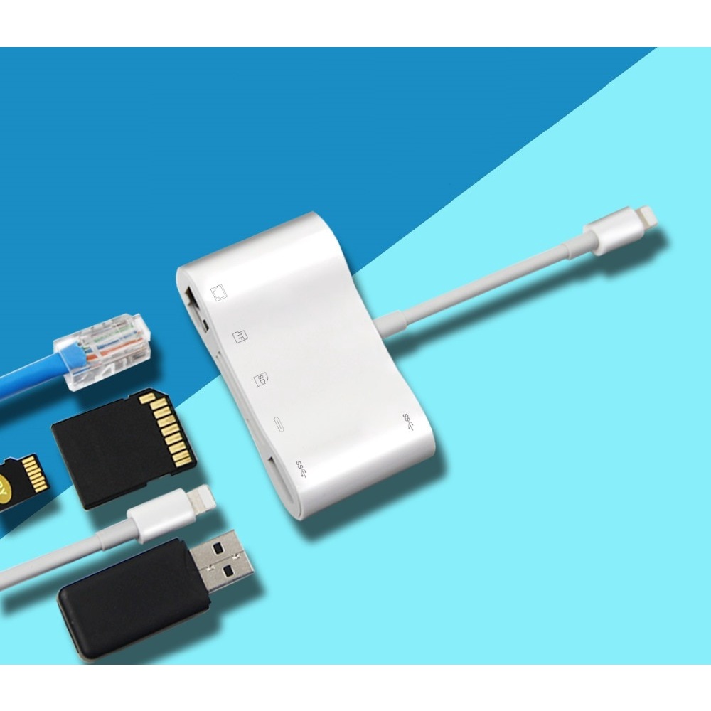 OTG Lightning Ethernet LAN RJ45 Card Reader USB 6in1 Adapter