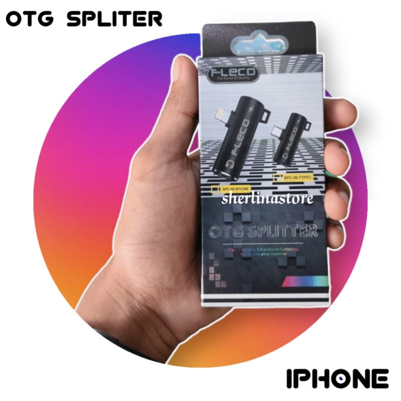 OTG SPLITTER FLECO ORIGINAL 2in1 Otg Converter iphone Sambungan Headset 6+ 7+ 8+ X XR XS 11 12 13 PRO MAX
