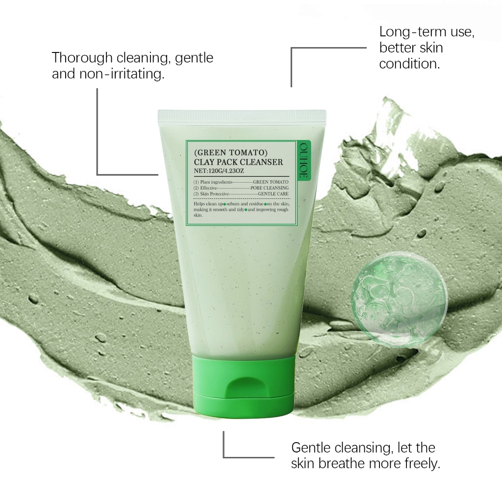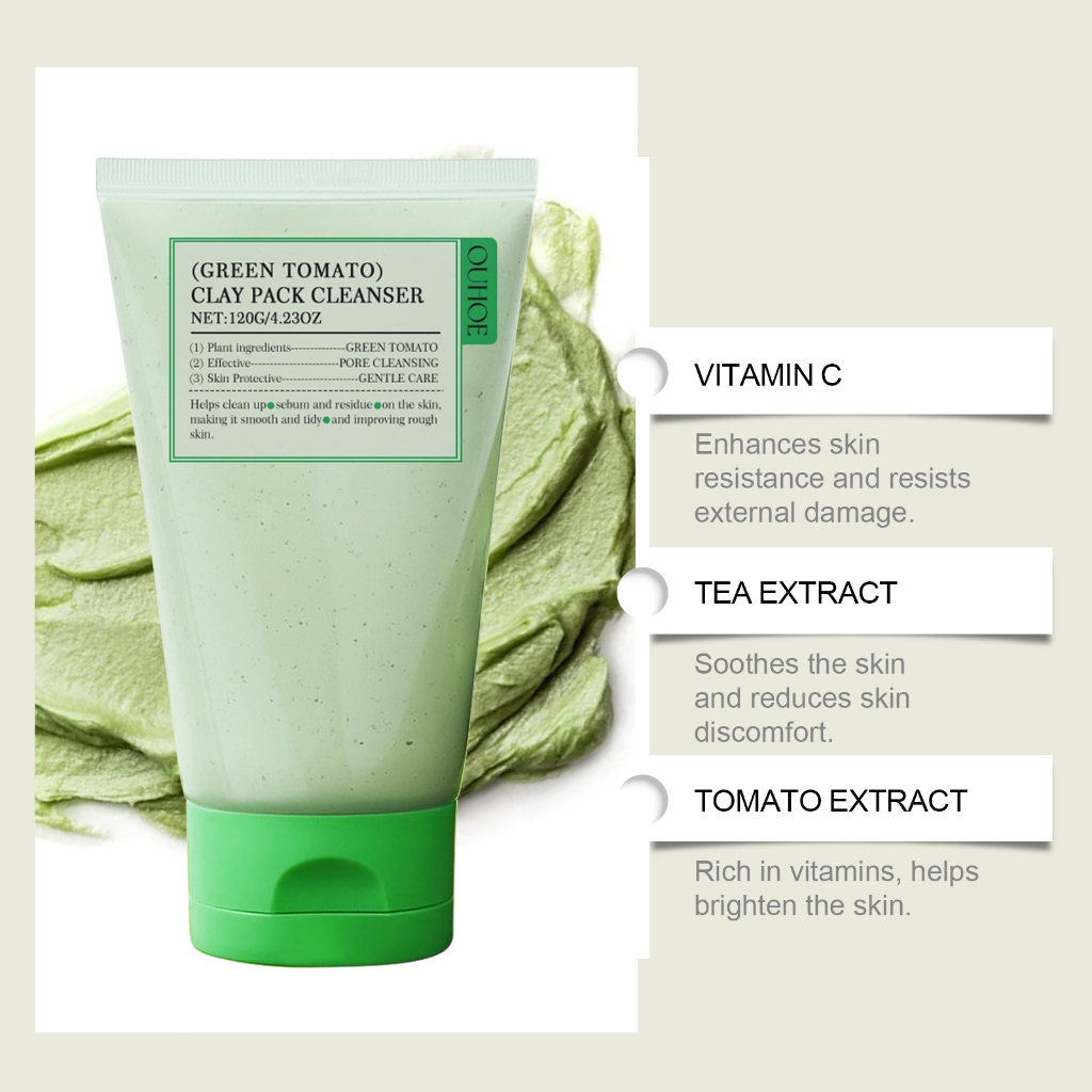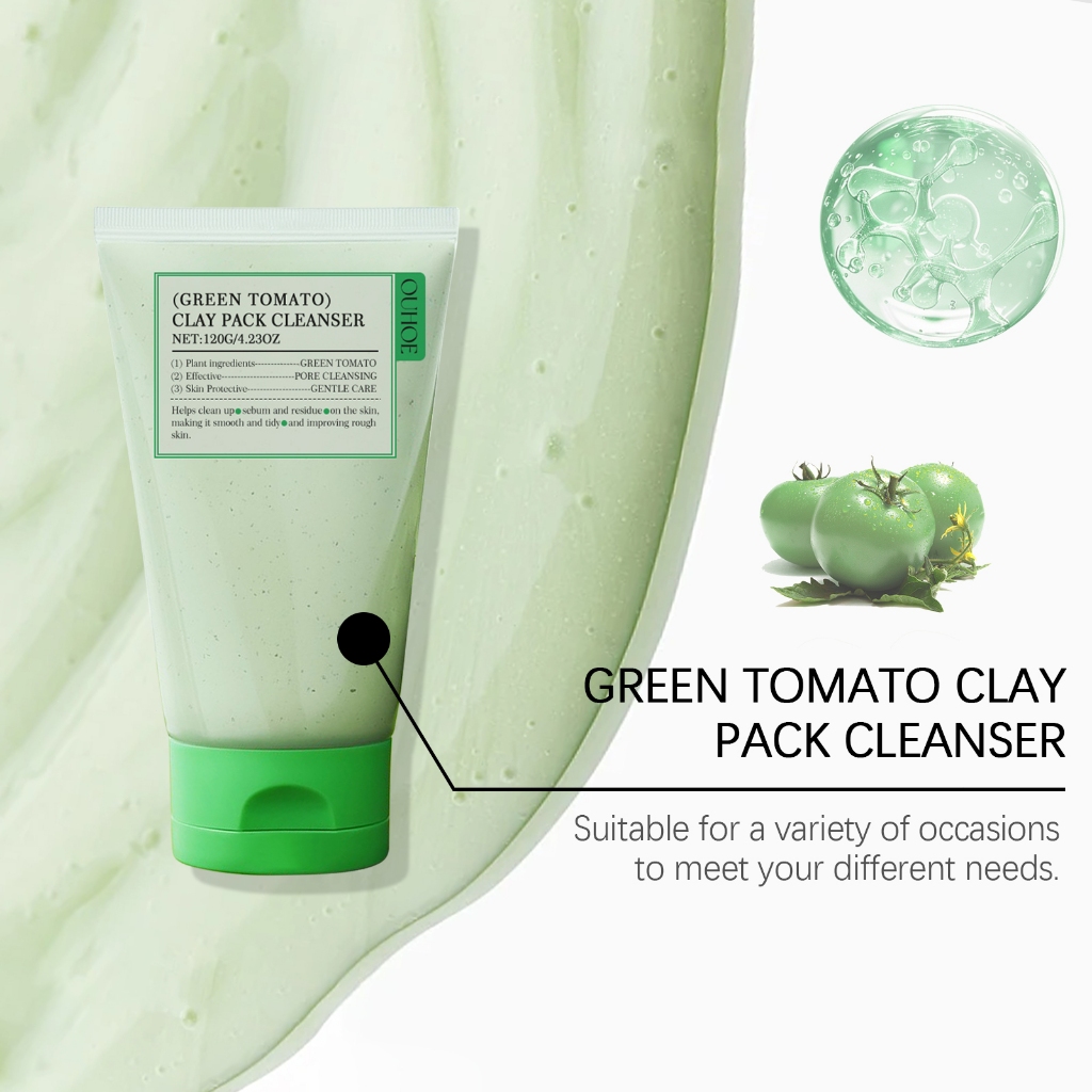 OUHOE Green Tomato Clay Masker 120 gclay masker glad2glow Clay Pack Fully Green Tomato Clay Masker Facial Foaming Cleanser Deeply Moisturizing Brightening Face Wash