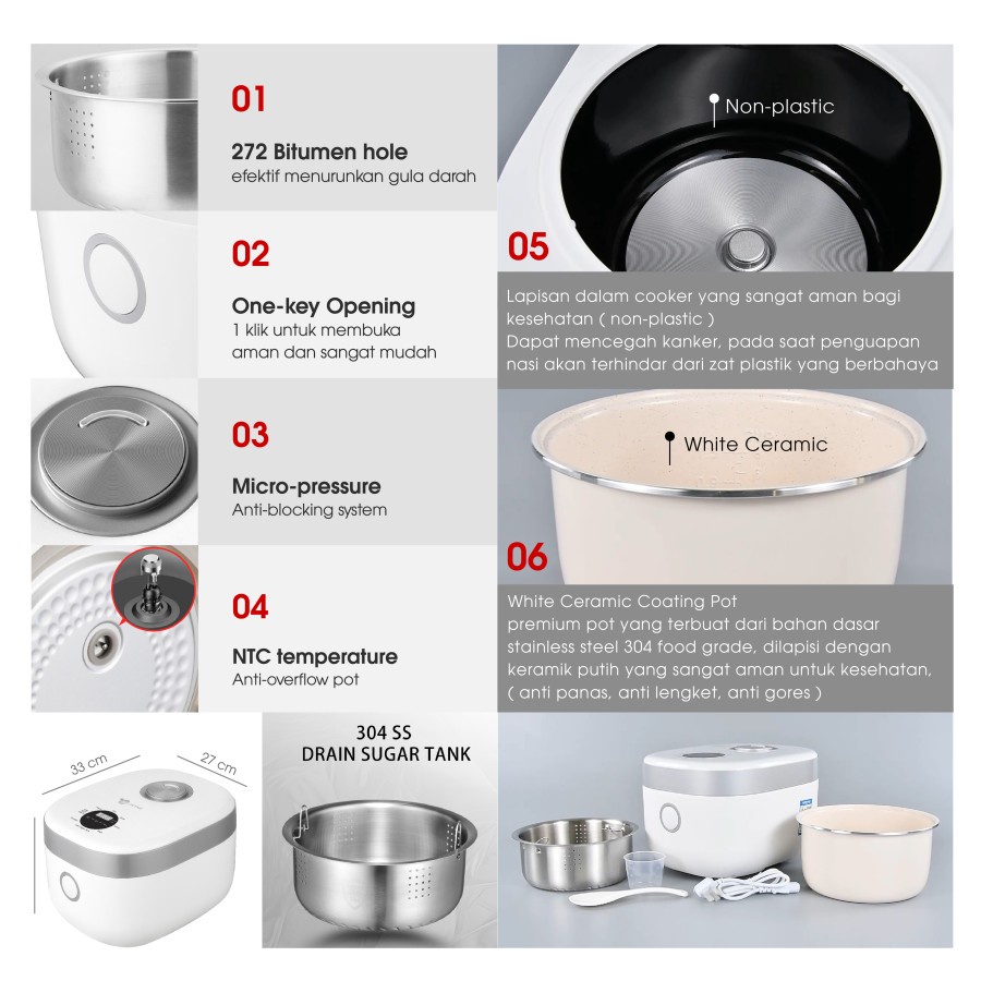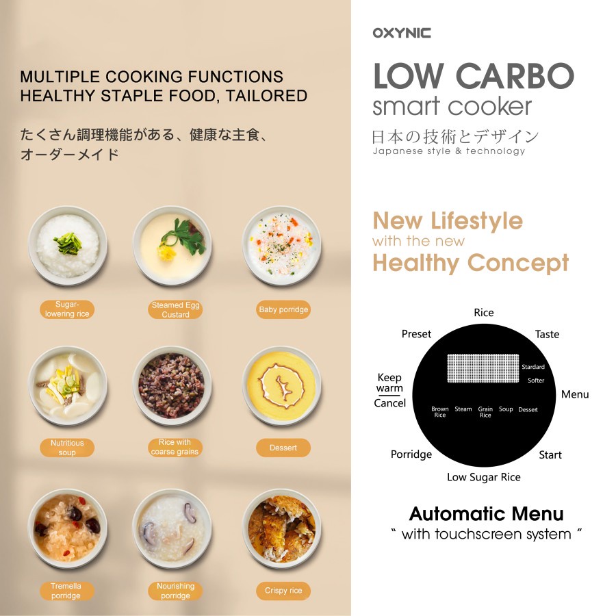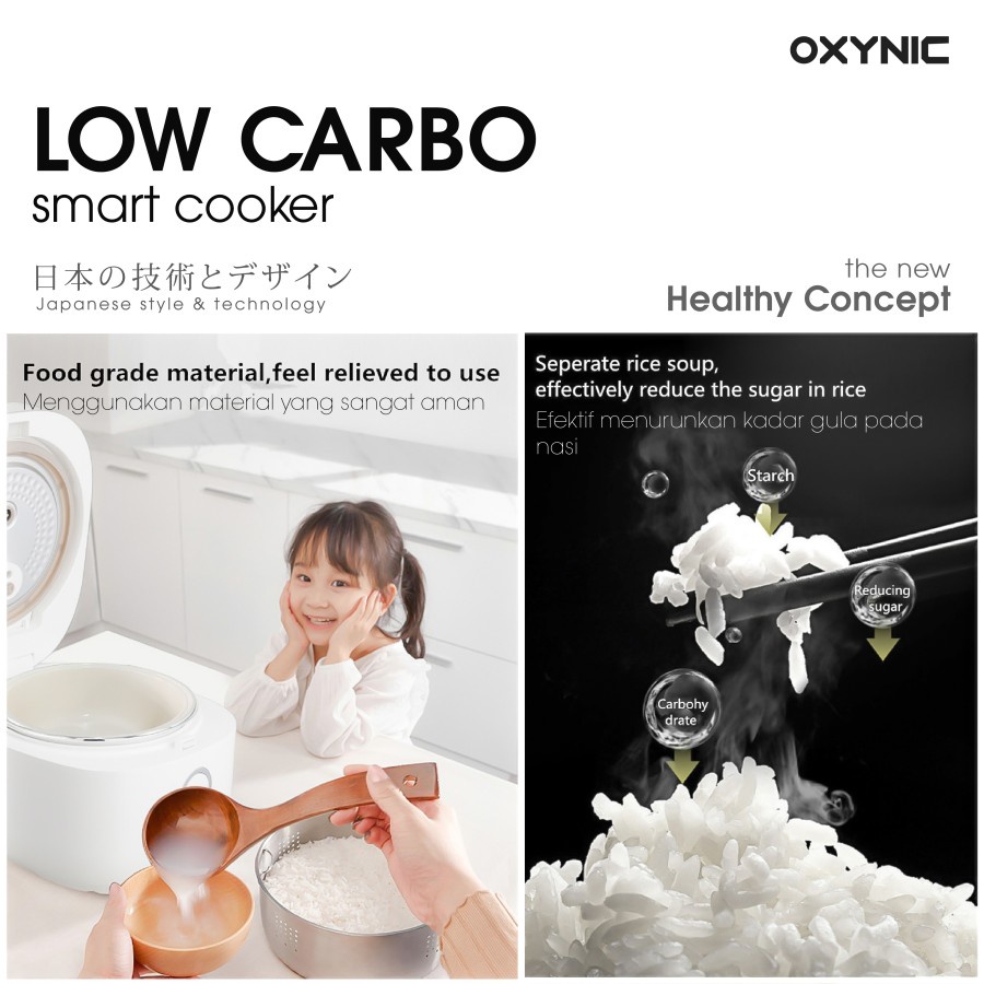 OXYNIC Smart Cooker Digital Low Carbo 1.8 Liter 600 Watt Multifungsi Garansi 2 tahun - Oxynic Rice Cooker Low Carbo