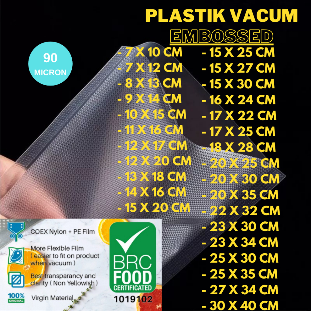 Plastik Vacum Makanan Emboss 90 Micron / Bag Plastik Vacuum Vakum Embossed Food Grade Bintik