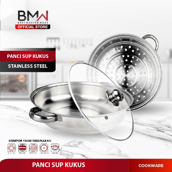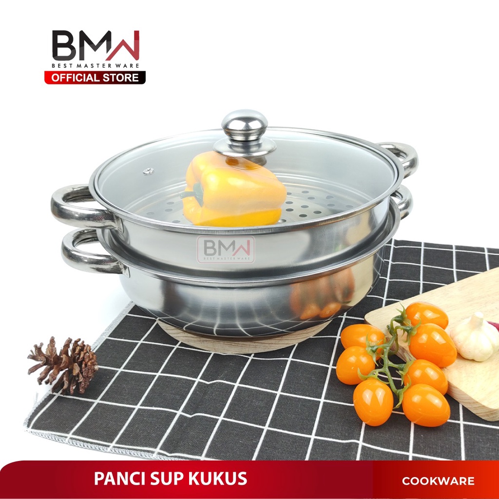BMW Kitchen Ware - Panci Kukus Set Stainless Steel Panci Sup Steamer Ikan Bakpao Siomay 2 Susun 28Cm Tebal