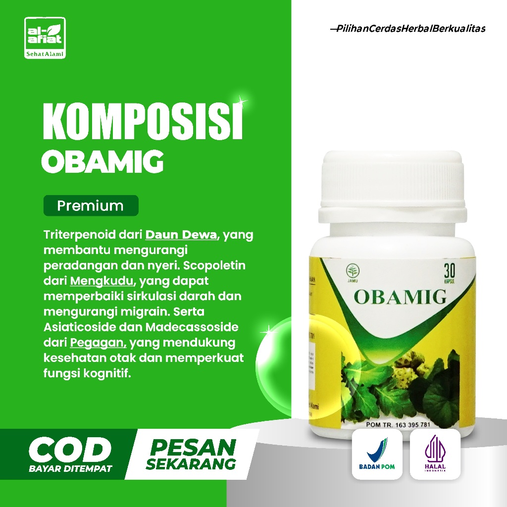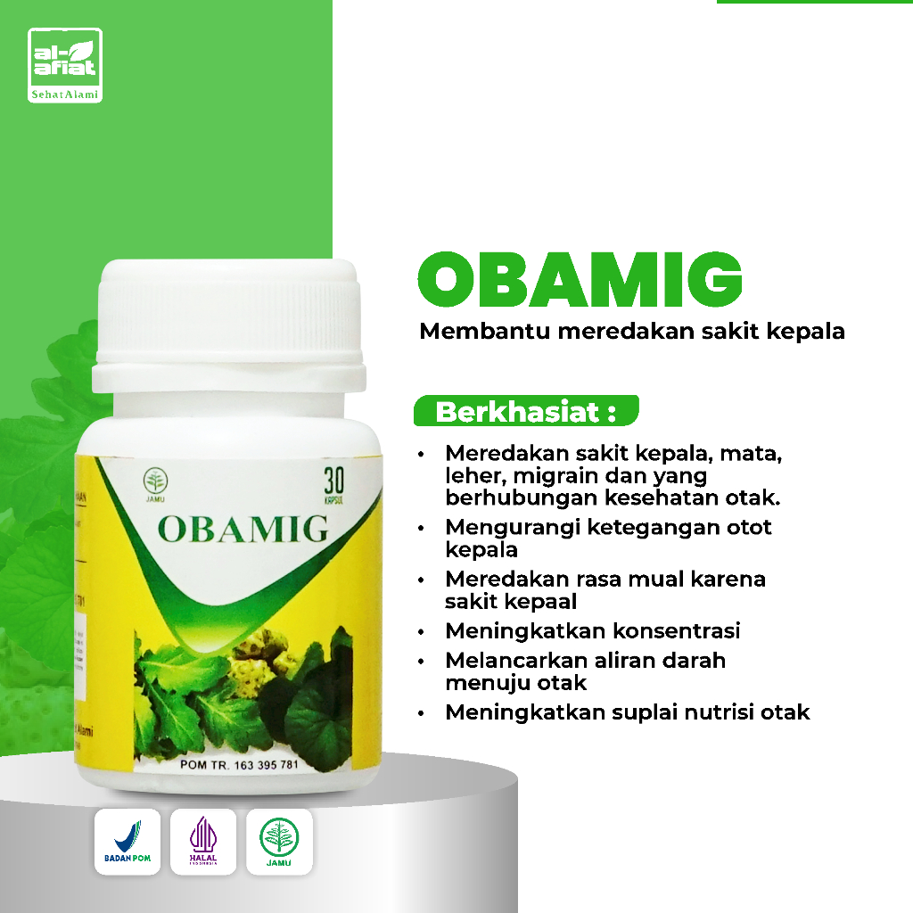 Herbal Obamig Kapsul Alafiat – Pereda Pusing, Migrain & Sakit Kepala Alami