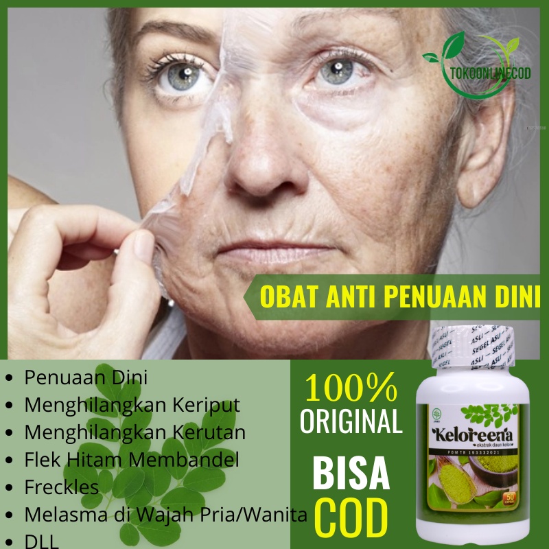 Obat Anti Penuaan Dini, Herbal Untuk Awet Muda, Menghilangkan Kulit Keriput, Flek Hitam Membandel, Freckles, Melasma di Wajah Pria & Wanita, KELOREENA Serbuk Daun Kelor
