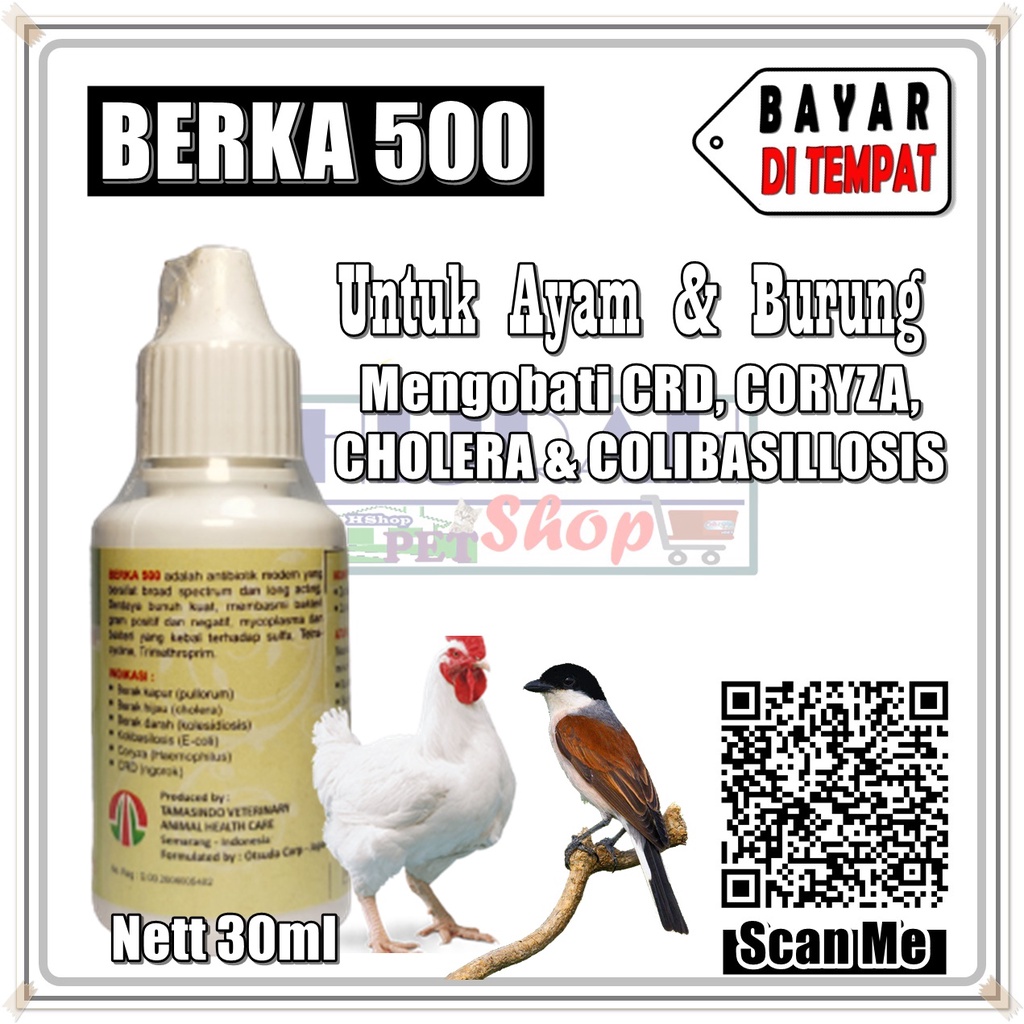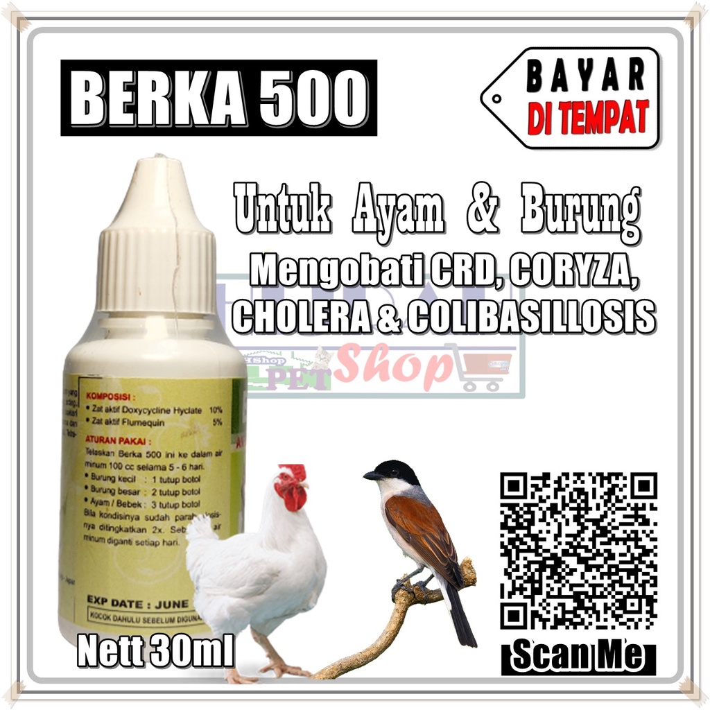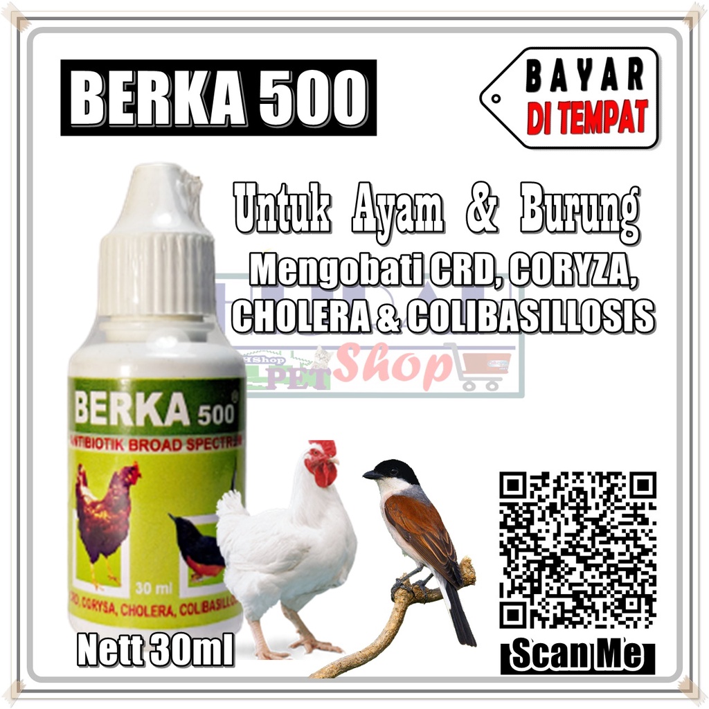 Obat Ayam Obat Burung Obat Unggas Obat Antibiotik Ayam Burung Unggas Sakit Flu Demam Diare Lemas BERKA 500 - Kemasan 30ml - Hijrah Pet Shop