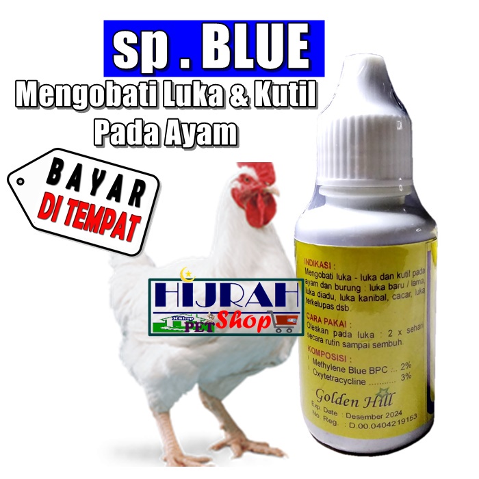 Obat Ayam Obat Luka Ayam Obat Burung Obat Kutil Iritasi Cacar Dan Jamuran Pada Ayam Dan Burung SP BLUE - Kemasan Praktis Tetes 30ML - Hijrah Pet Shop