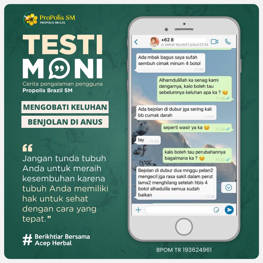 Obat Benjolan Di Anus - Anus Keluar - Anus Bengkak - Anus Sakit Perih - Anus Gatal Gatel - Anus Berdarah - Wasir Stadium 1 2 3 4 - Ambeien - Pengempes Benjolan Anus - Penghilang Benjolan Fistula Ani dgn Propolis Brazil SM Herbal Alami Original