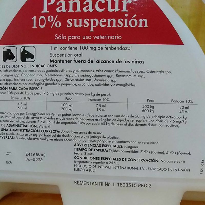 Obat Cacing Hewan PANACUR 10% Suspension 1Liter