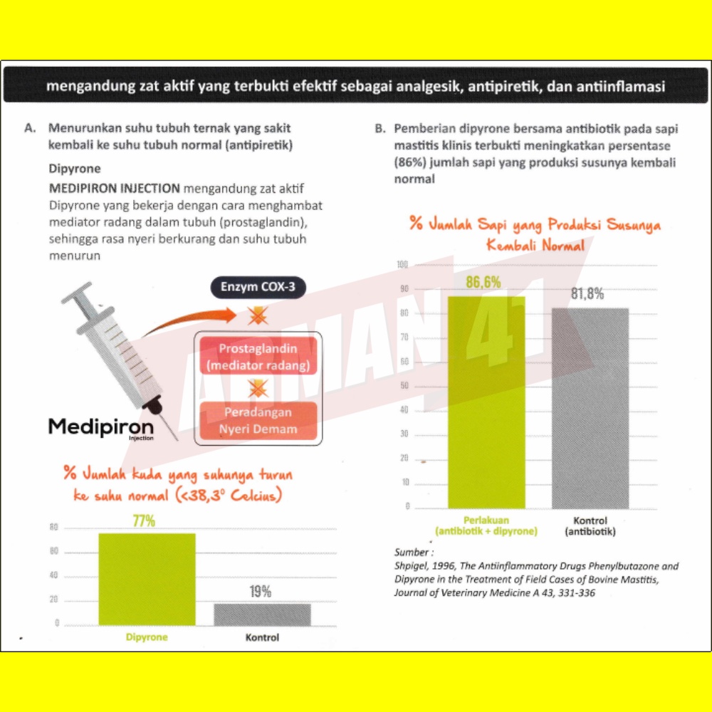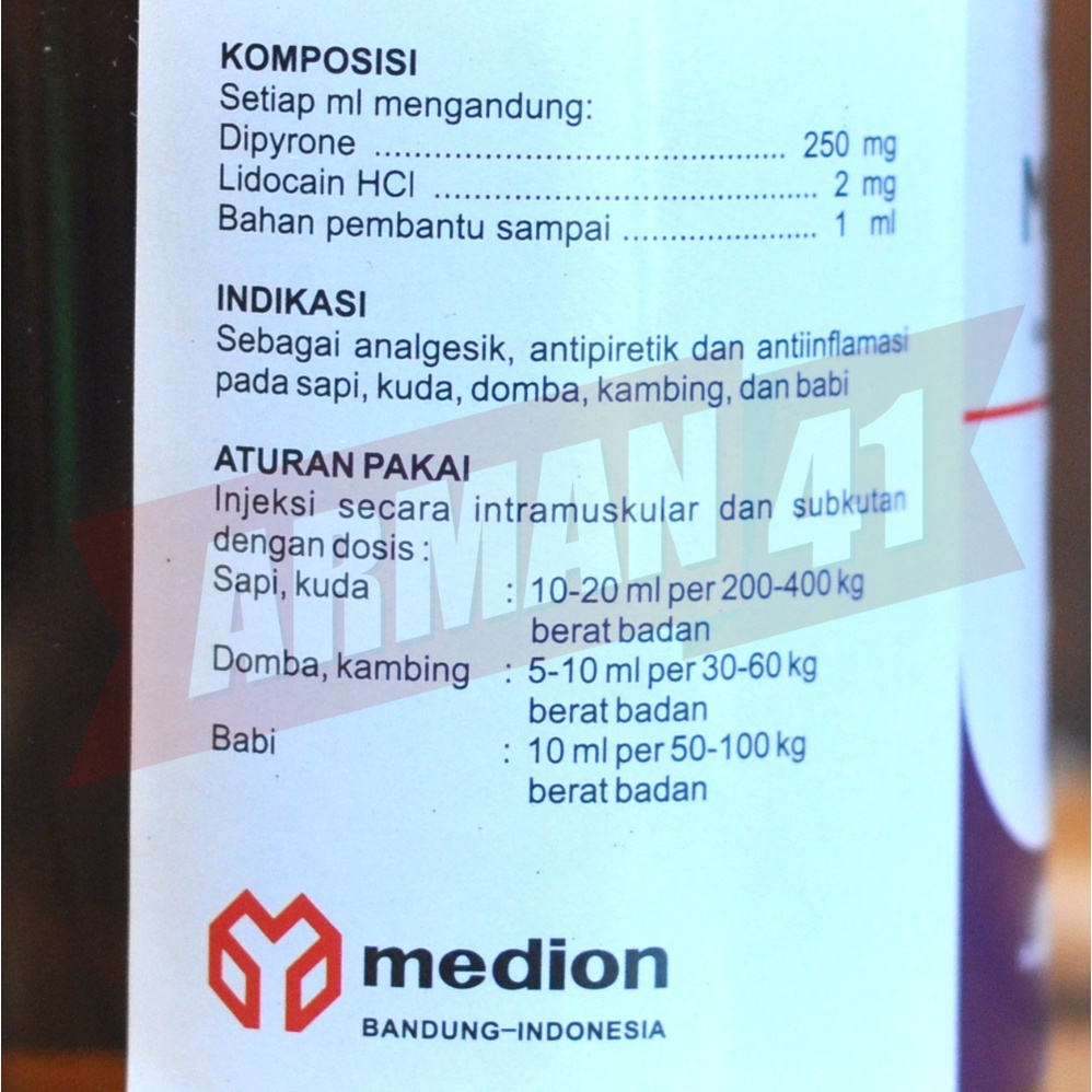 Obat Demam Nyeri Radang Sapi Kambing Babi Kuda MEDIPIRON kemasan 100 ml MEDION