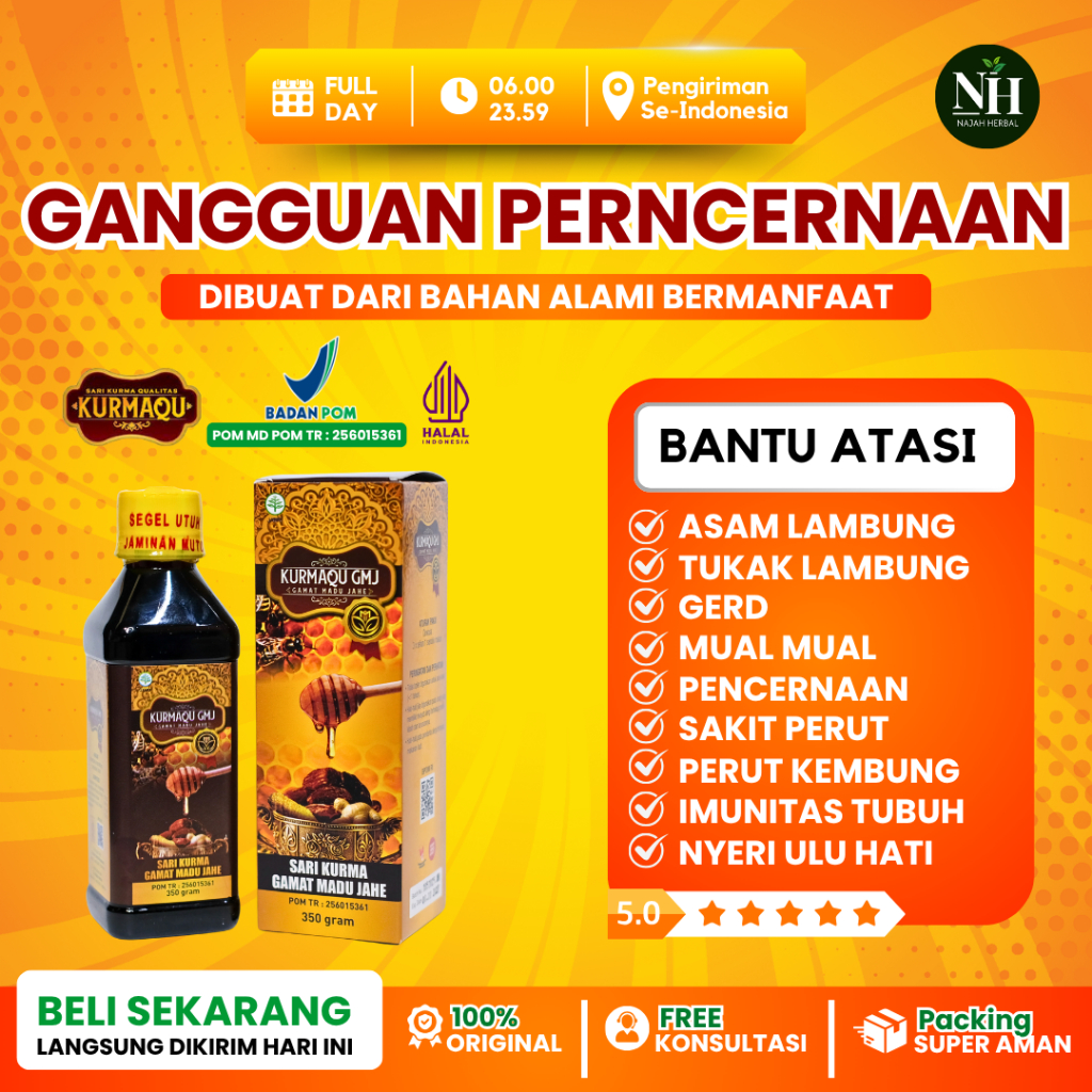 Obat Gangguan Pencernaan Diare Sembelit Sakit Maag GERD Usus Buntu Gastritis Asam Lambung IBS Sari Kurma KurmaQu 350g 100% ORIGINAL